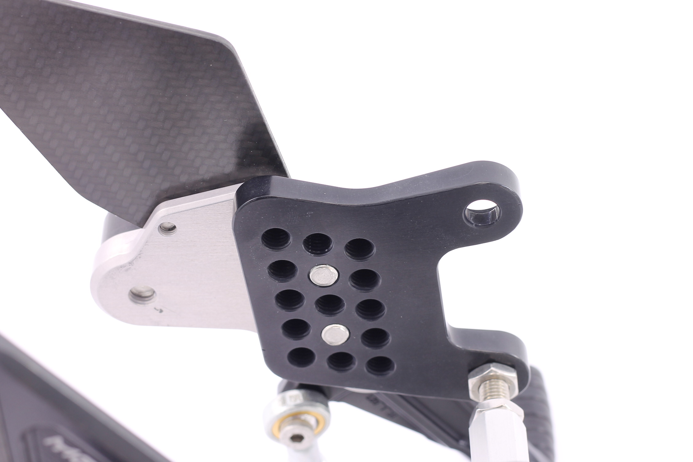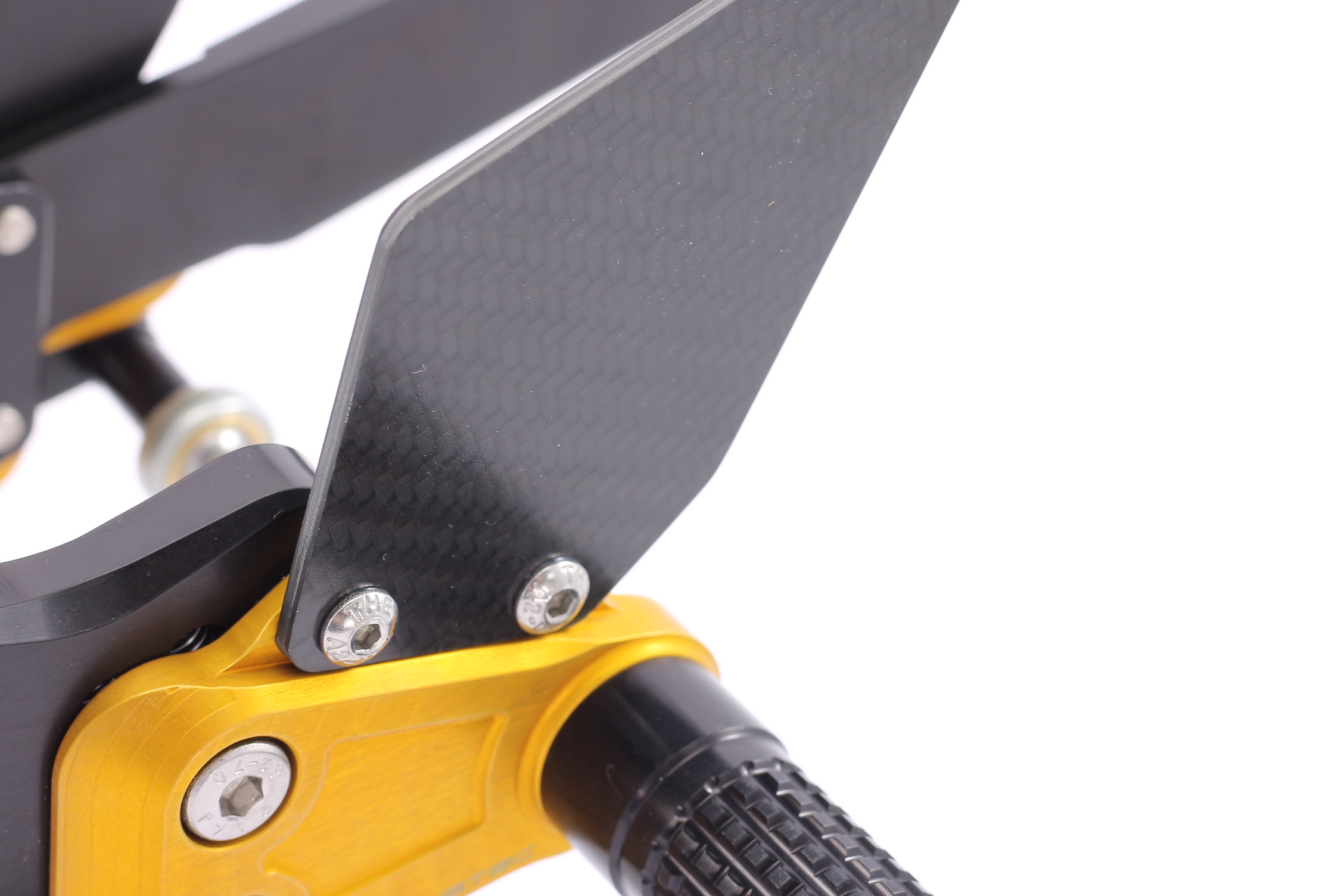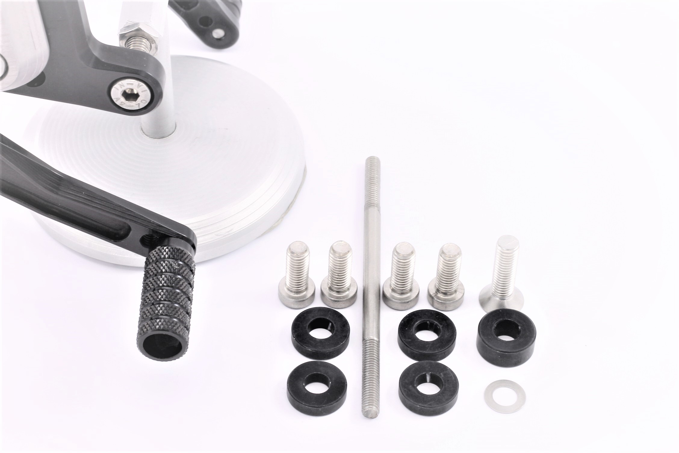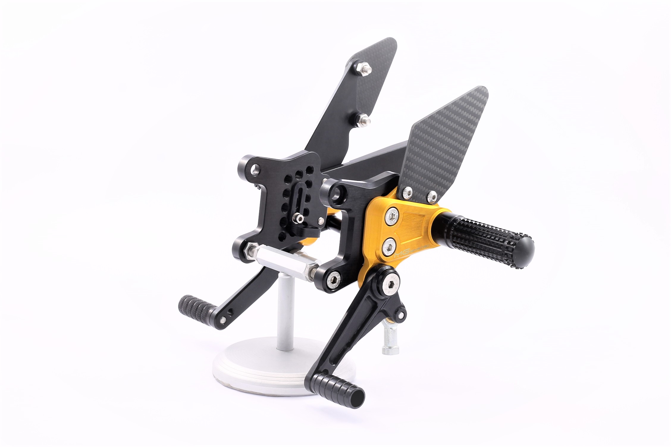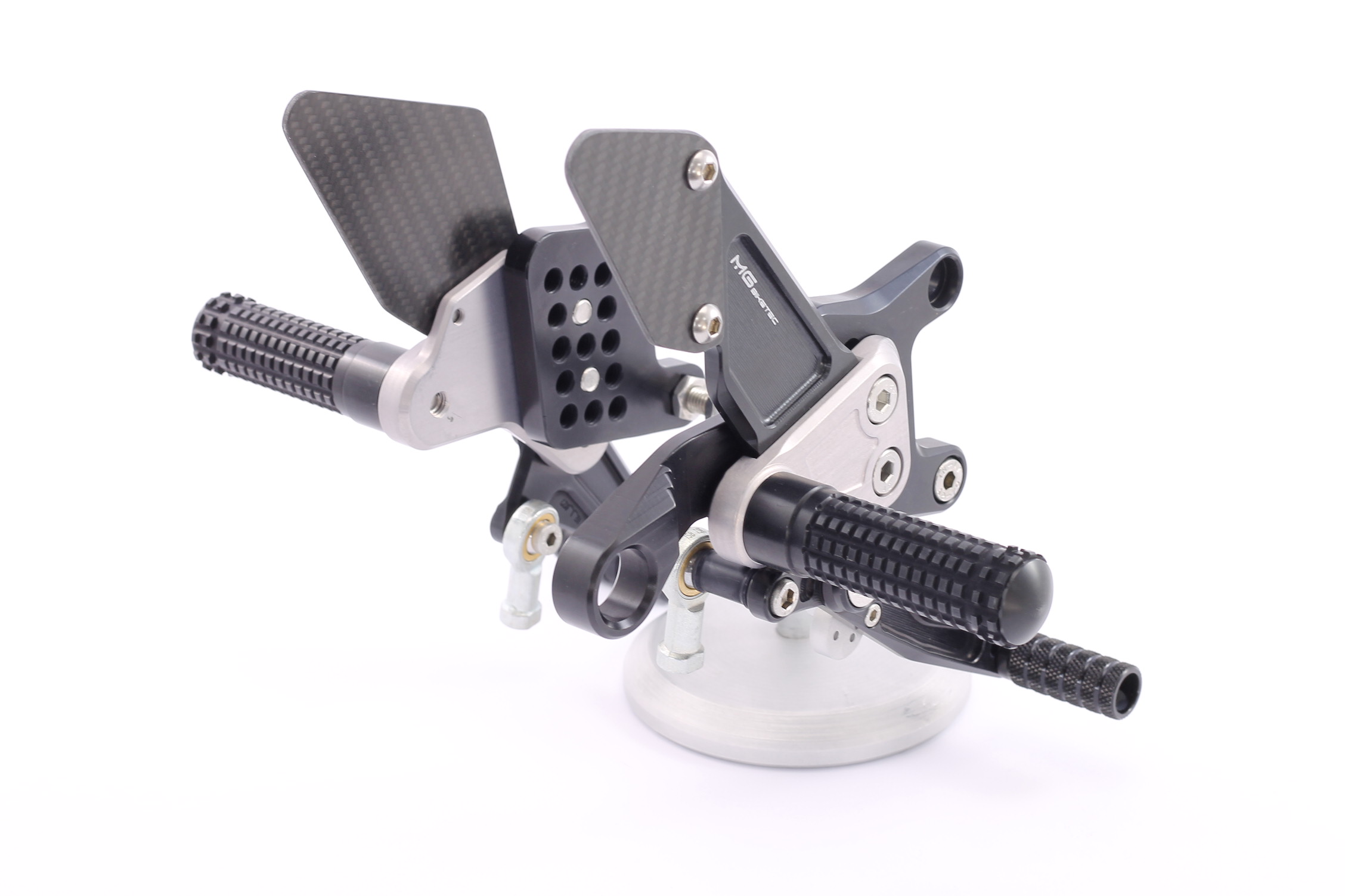 Rennsport erprobte Fussrastenanlage, voll ergonomisch verstellbar in 9 Positionen und bis zu 20 mm