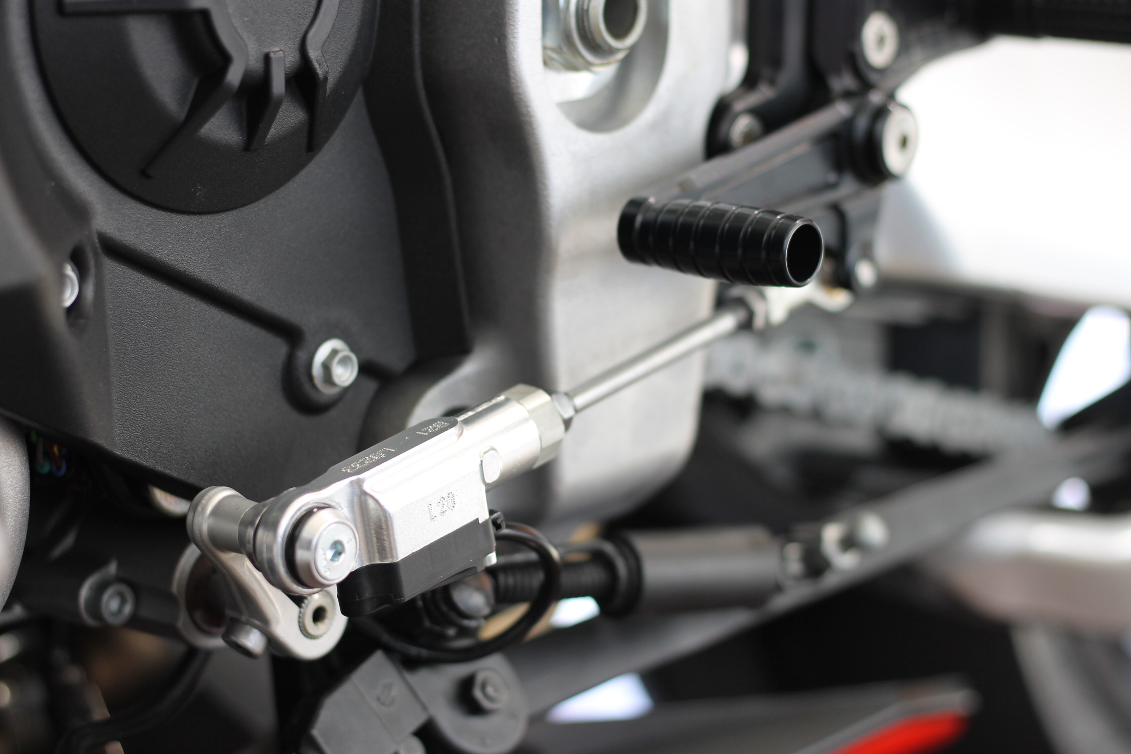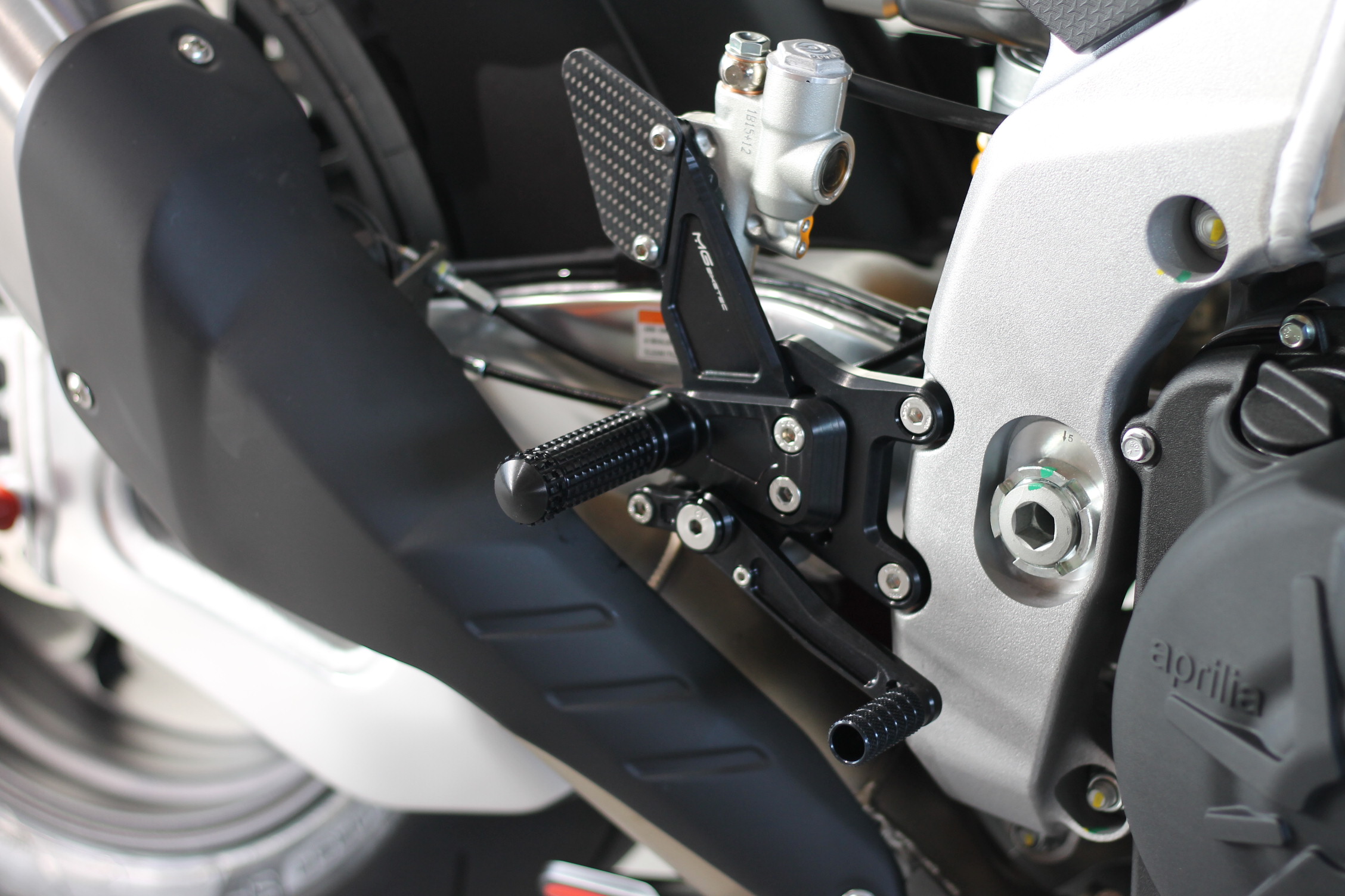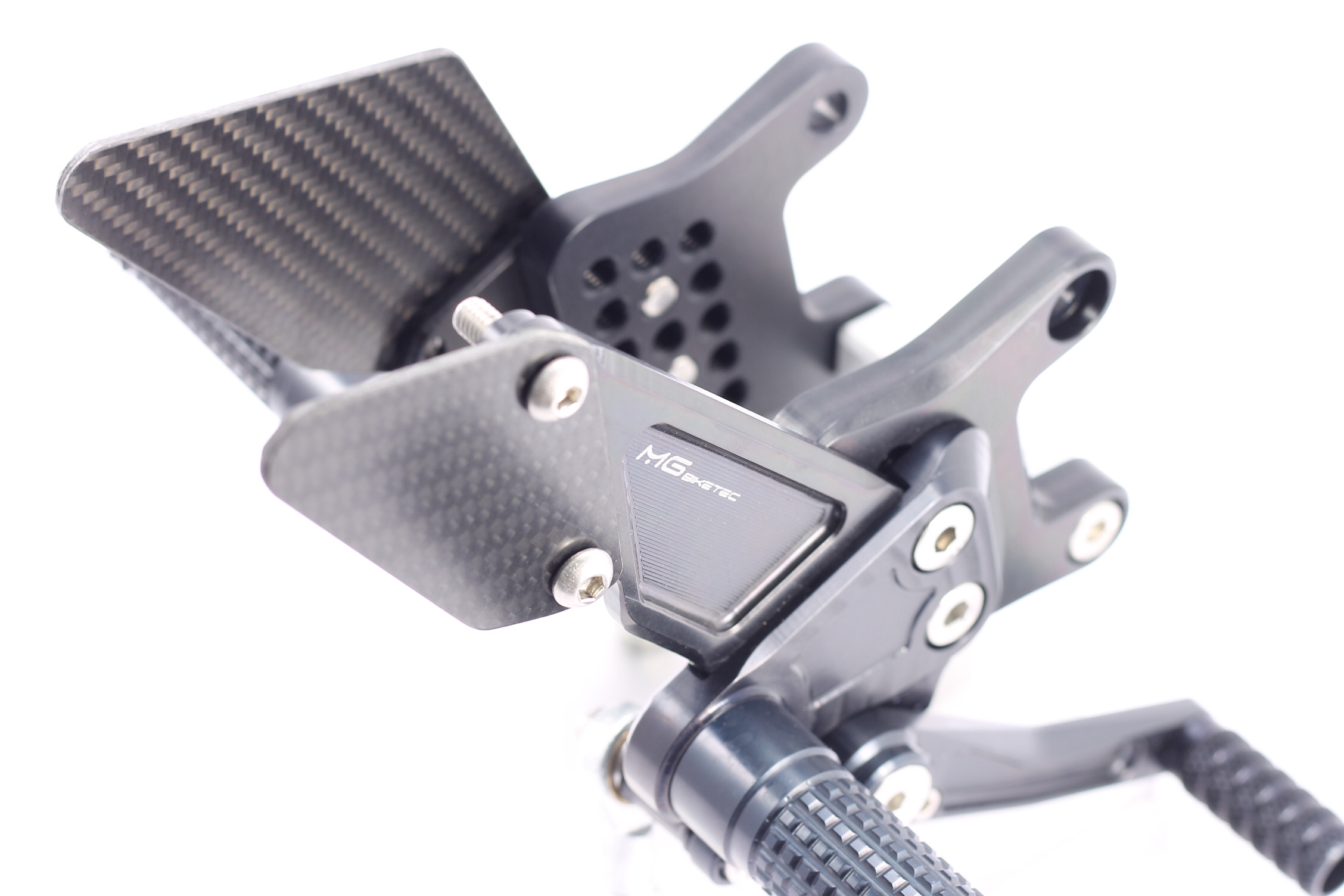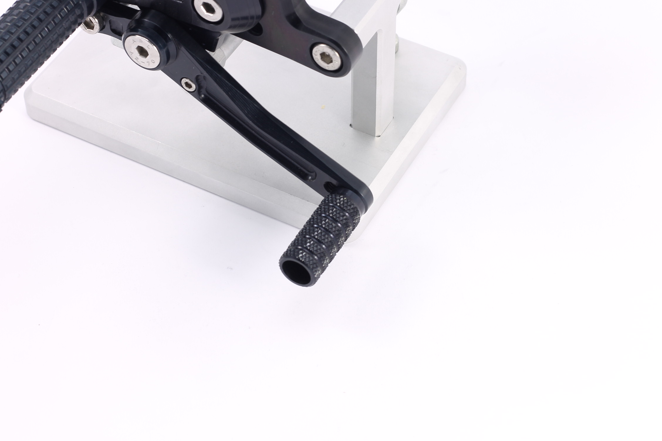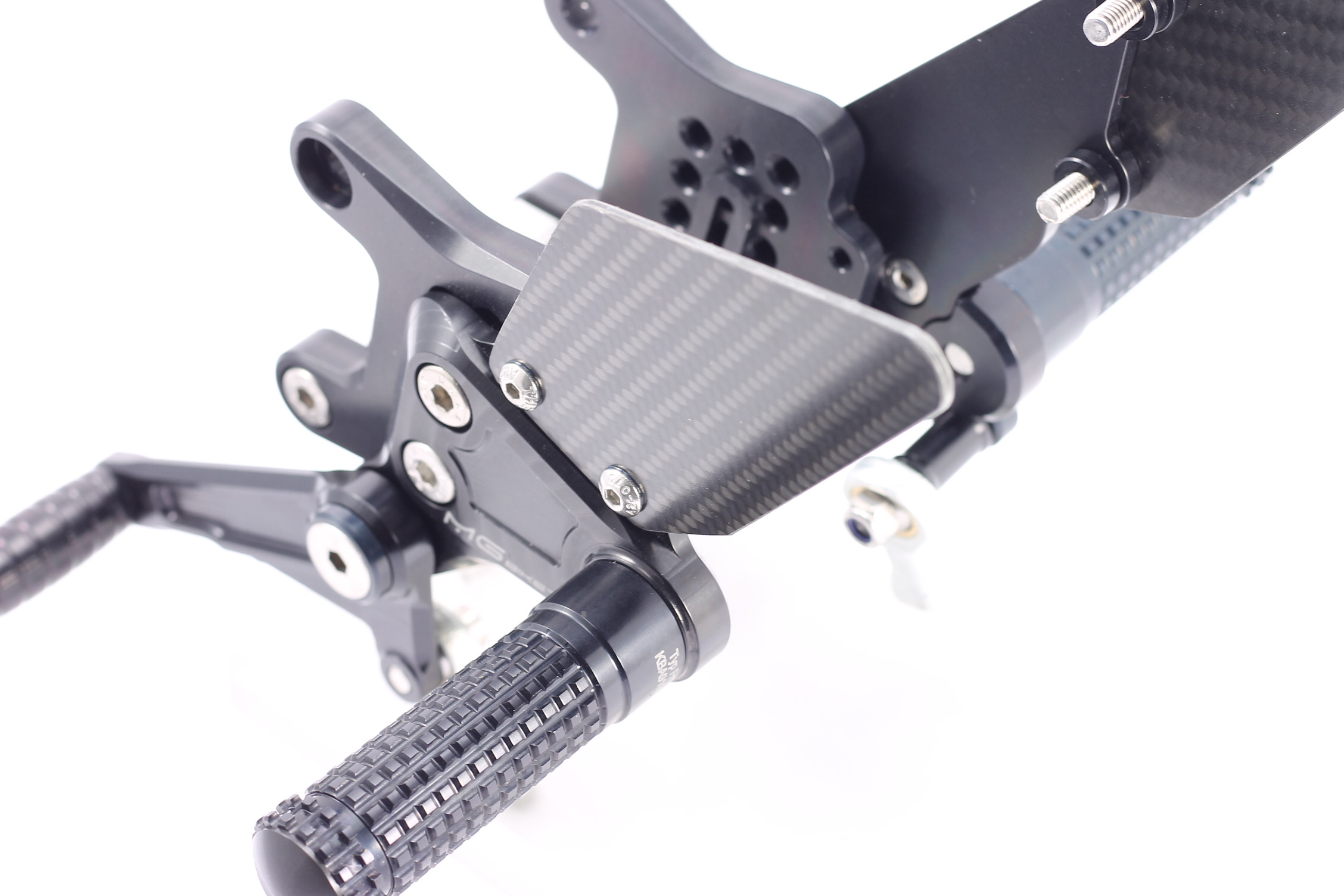 Rennsport erprobte Fussrastenanlage, voll ergonomisch verstellbar in 9 Positionen und bis zu 22 mm