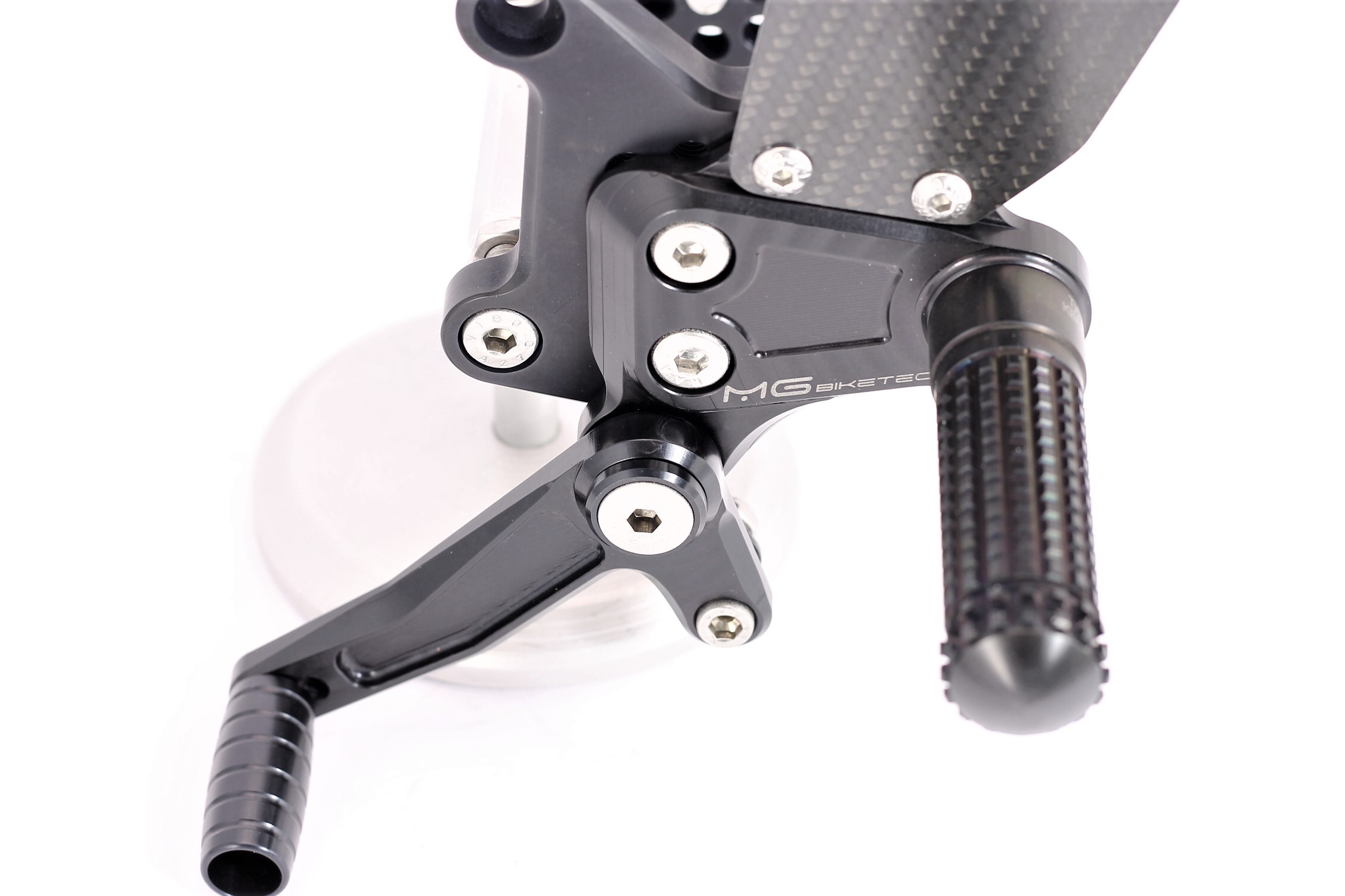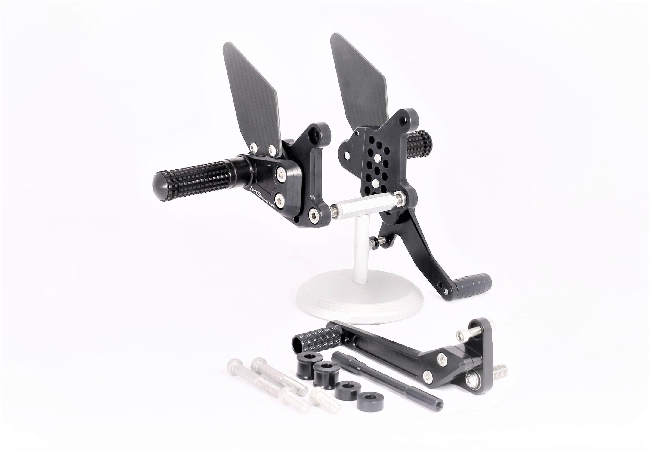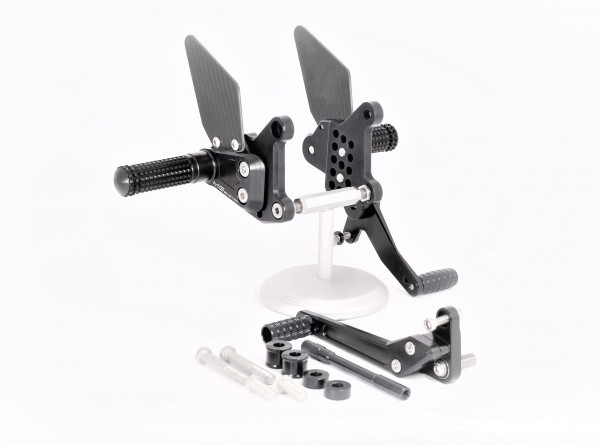 Rennsport erprobte Sport Fussrastenanlage, voll ergonomisch verstellbar in 9 Positionen und bis zu 20 mm