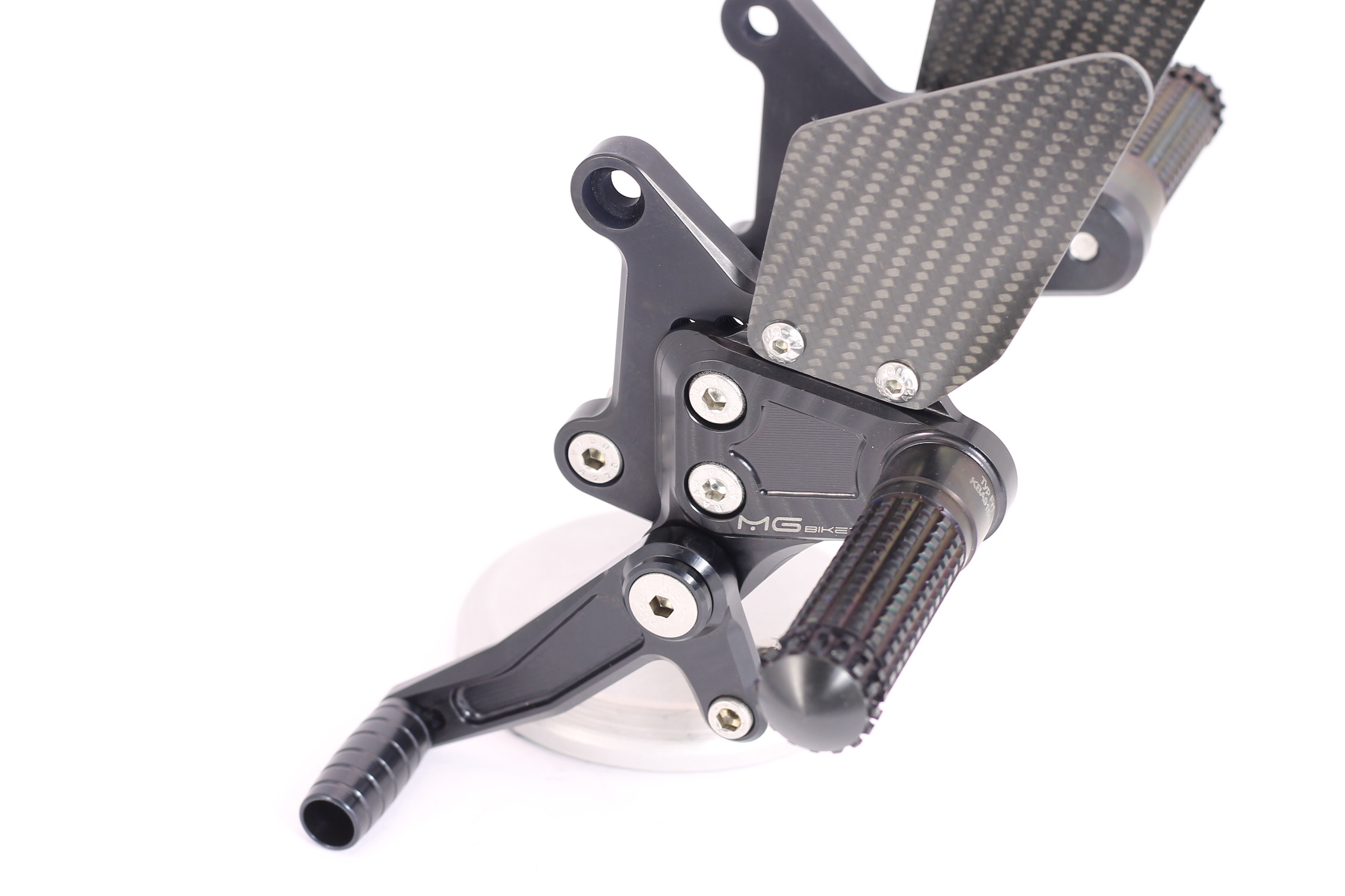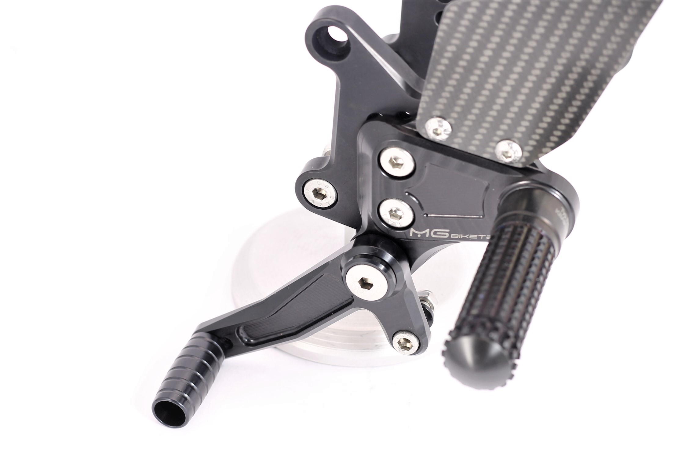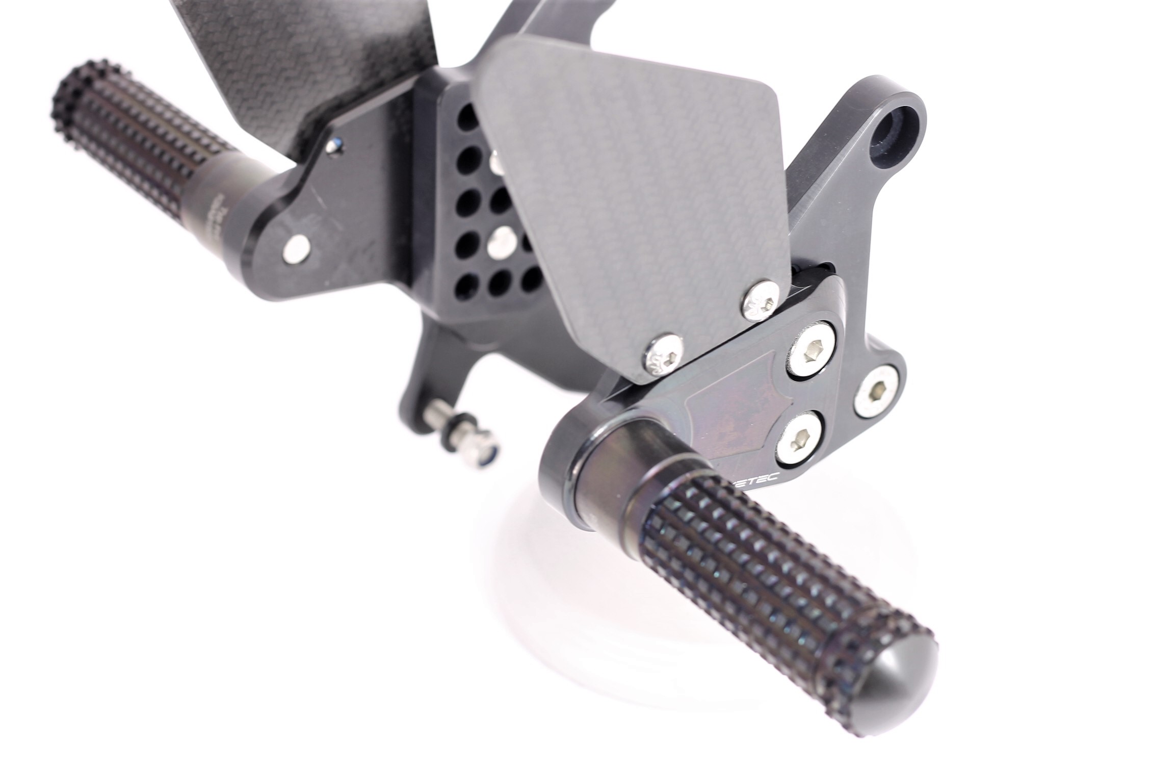 Rennsport erprobte Sport Fussrastenanlage, voll ergonomisch verstellbar in 9 Positionen und bis zu 20 mm
