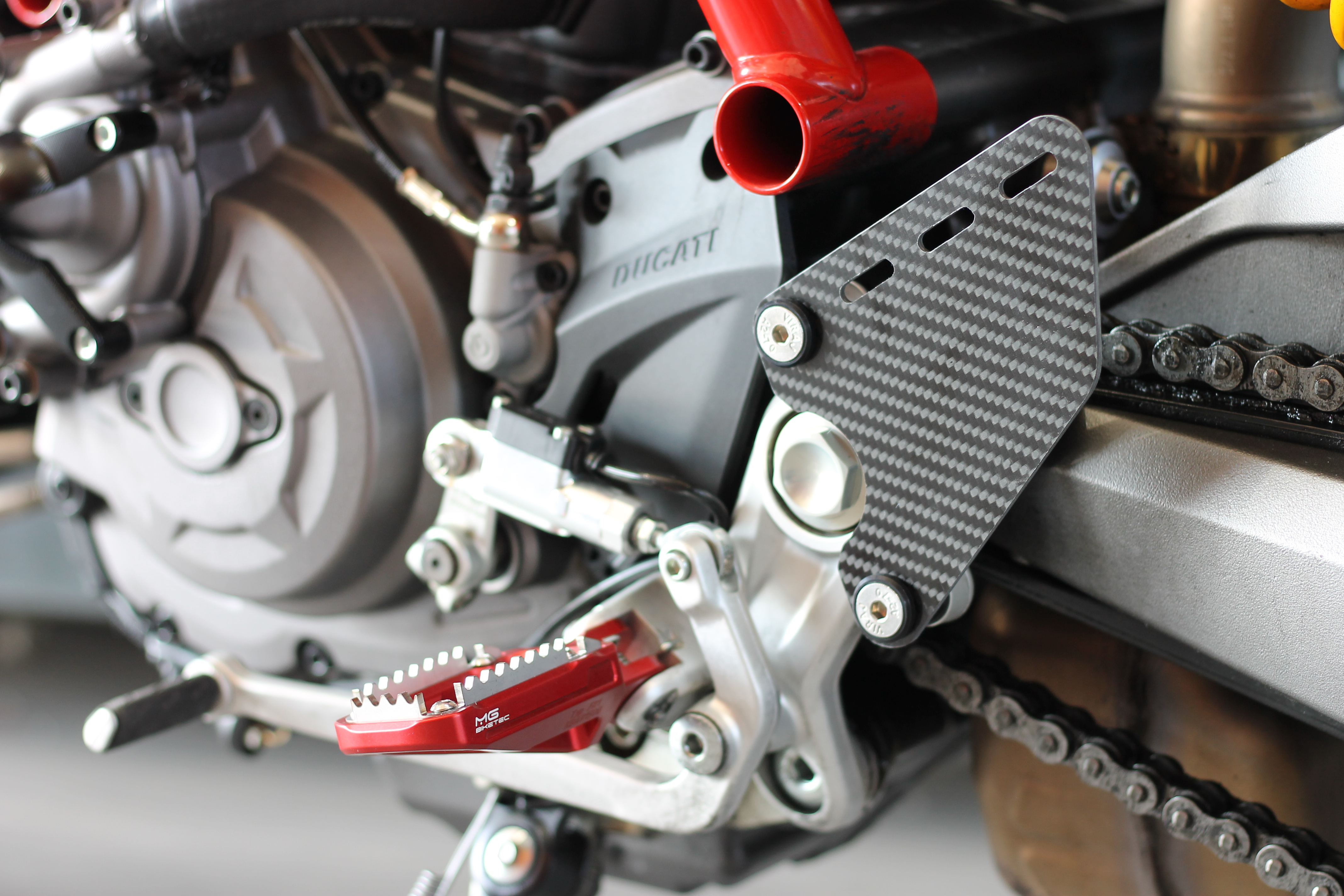 Sehr robust und leichtes 3 mm Carbon Fersenschützerkit geegnet für alle Ducati Hypermotard 950 / SP / RVE Modelle ab 2019