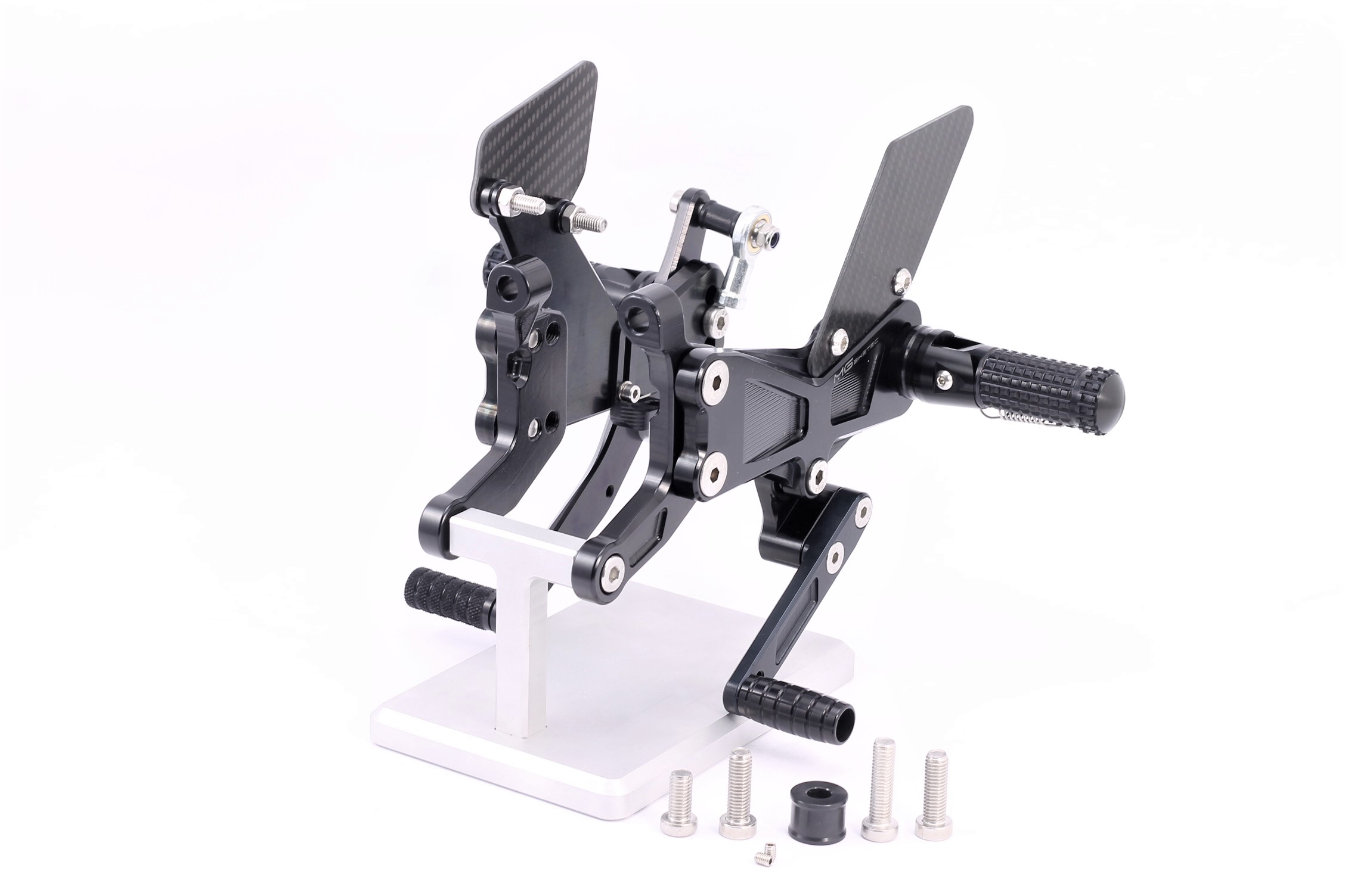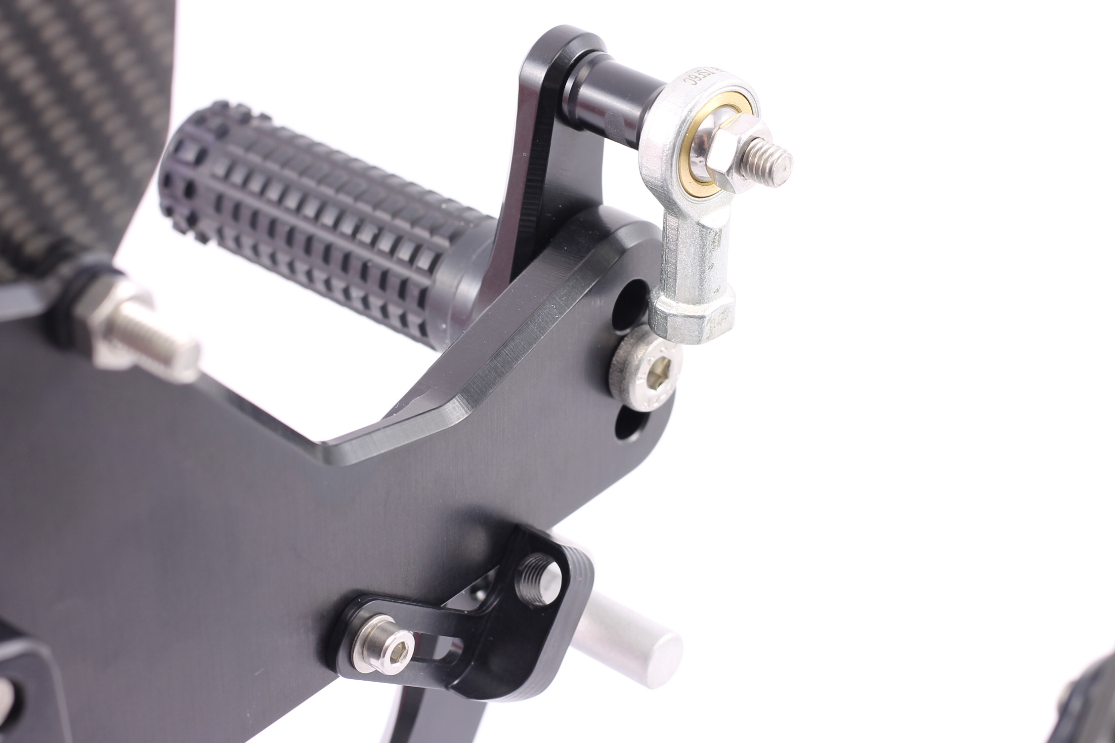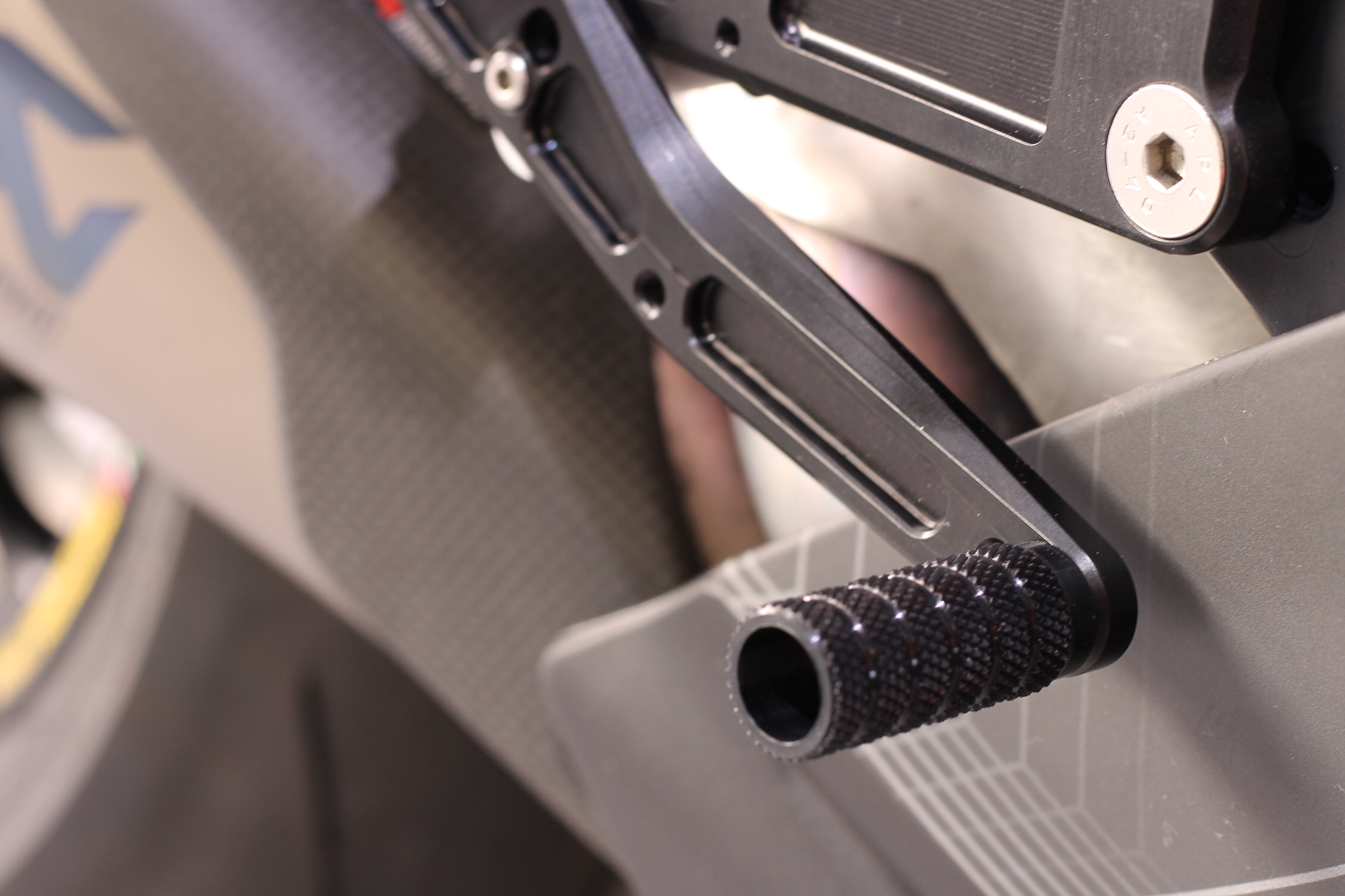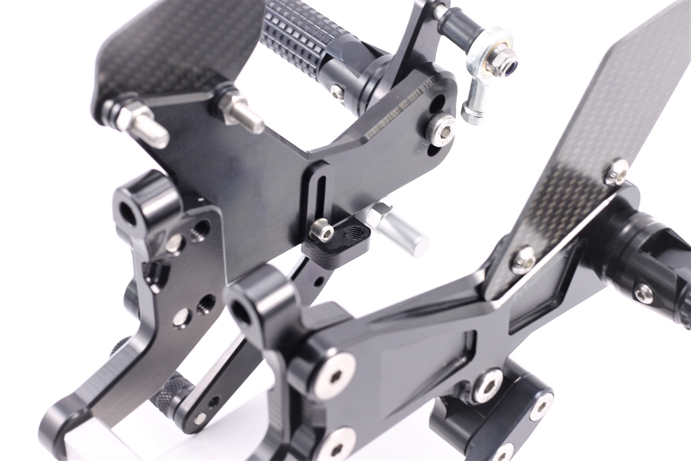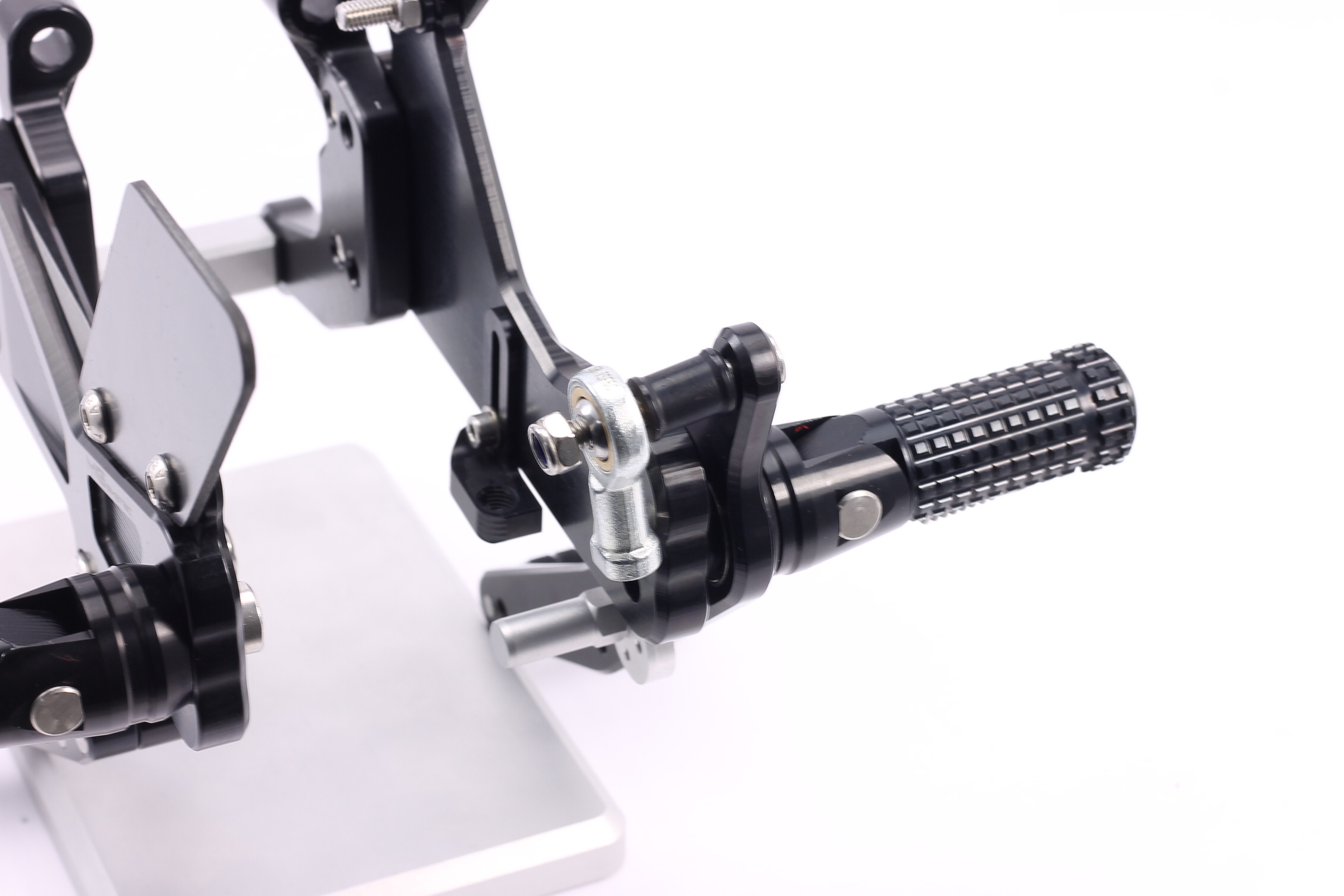 Rennsport erprobte Fussrastenanlage, voll ergonomisch verstellbar in 6 Positionen und bis zu 20 mm