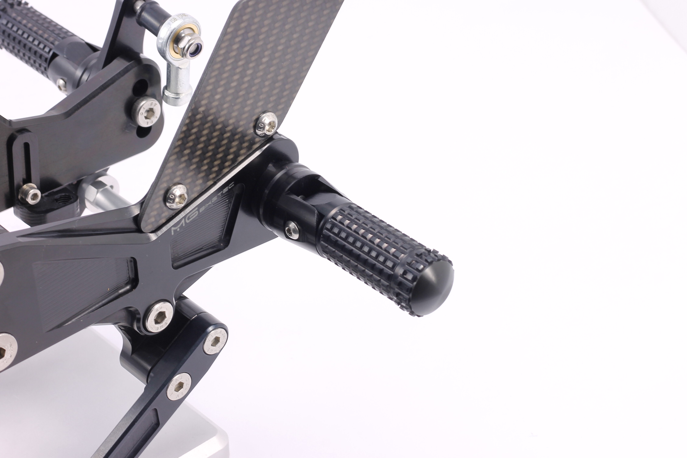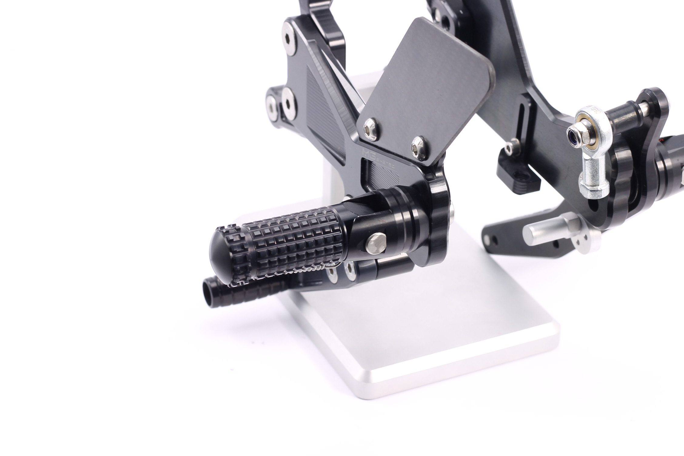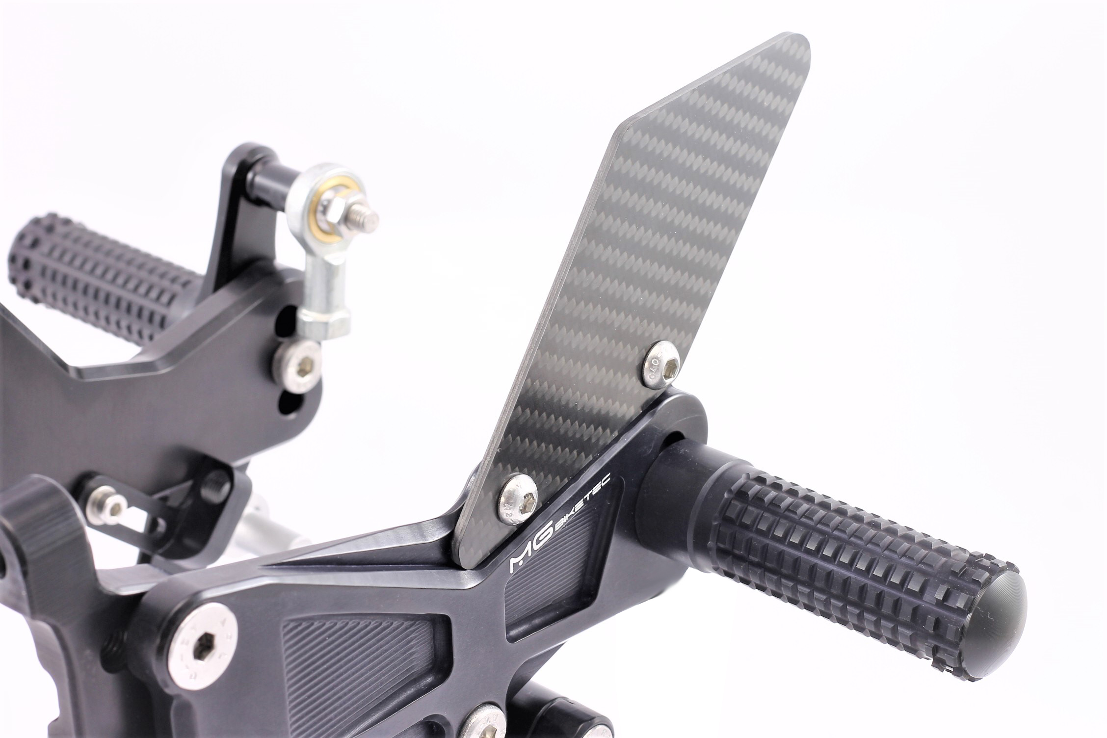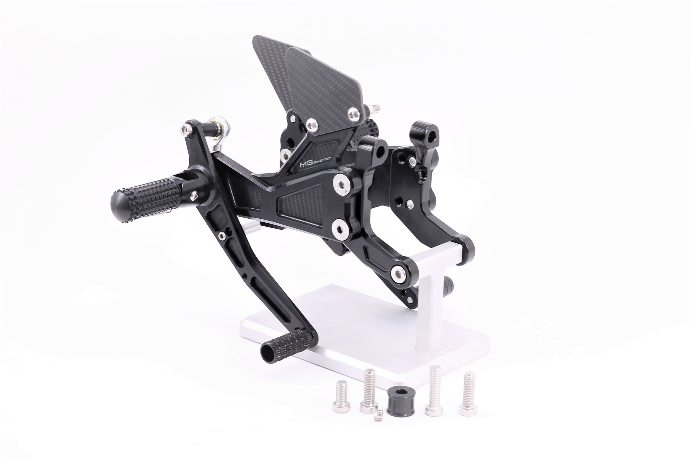 Rennsport erprobte Fussrastenanlage, voll ergonomisch verstellbar in 6 Positionen und bis zu 20 mm