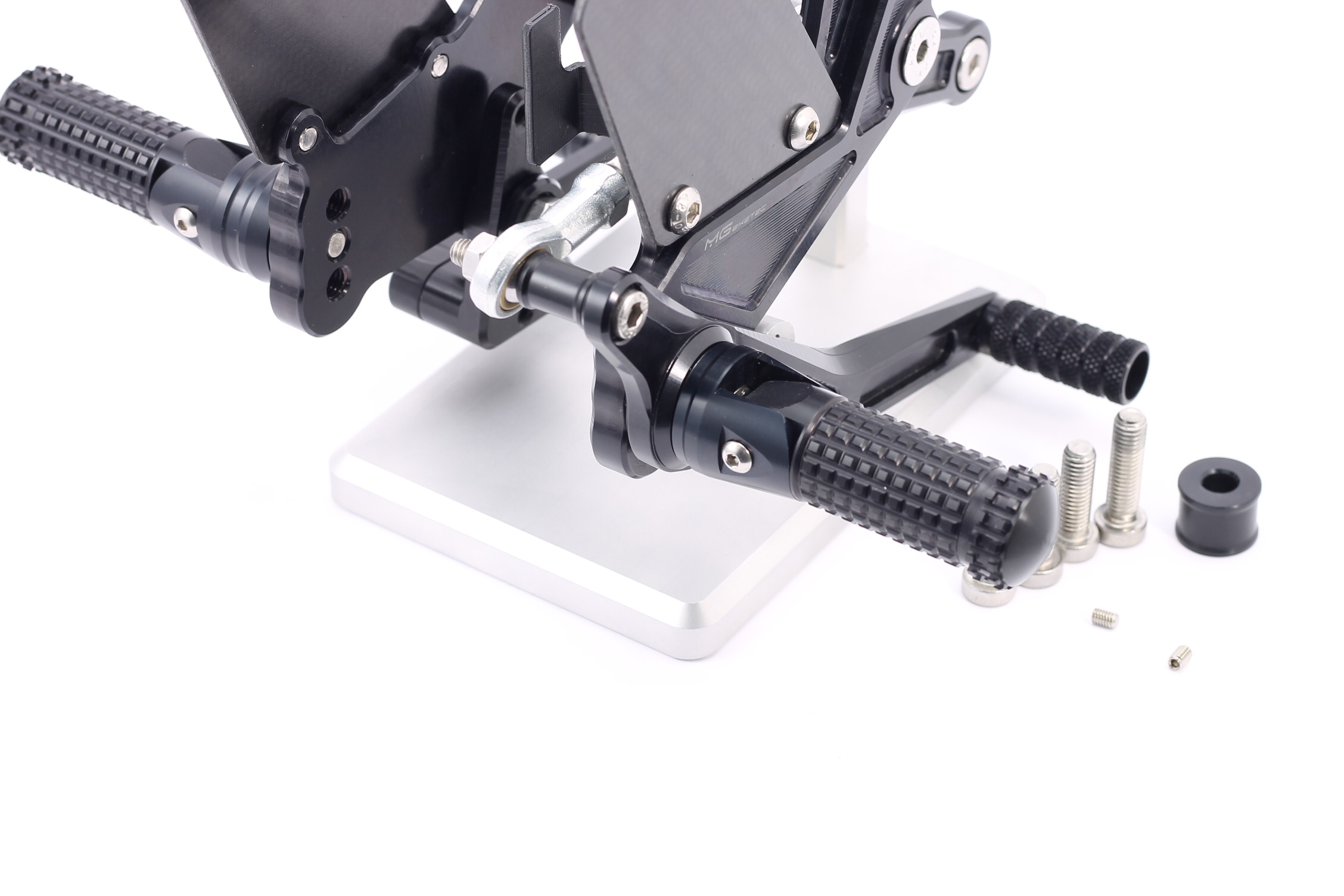 • Jede MG Biketec Fussrastenanlage wird mit einer TÜV Austria geprüften und KBA Deutschland ausgestellten ABE geliefert (Außer Rennsport Anlagen!)