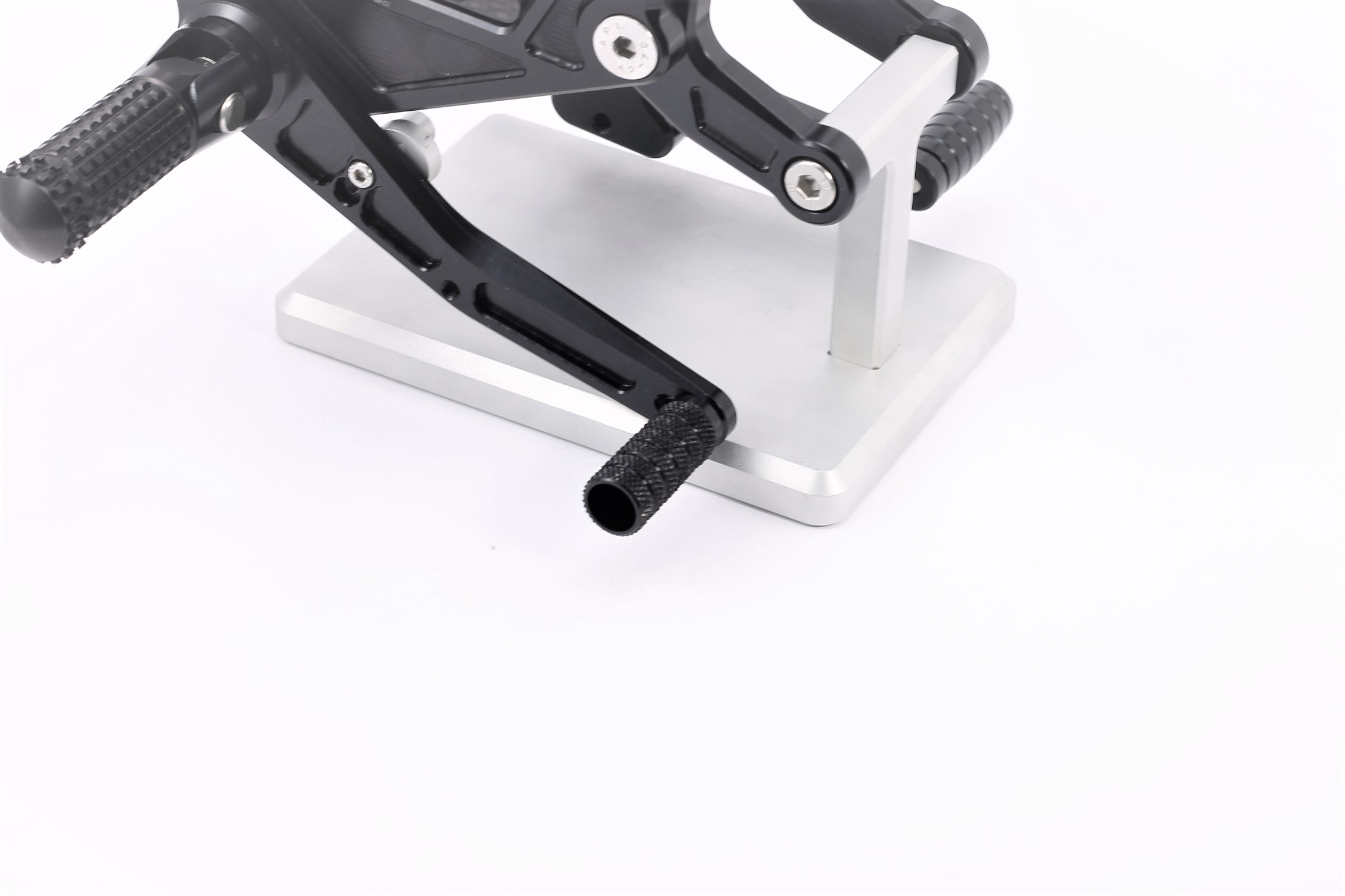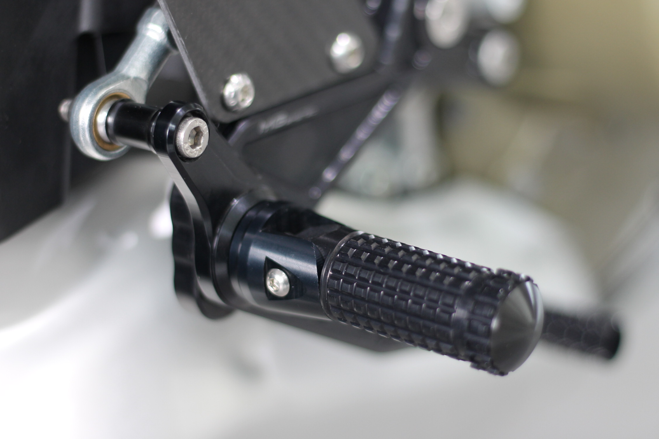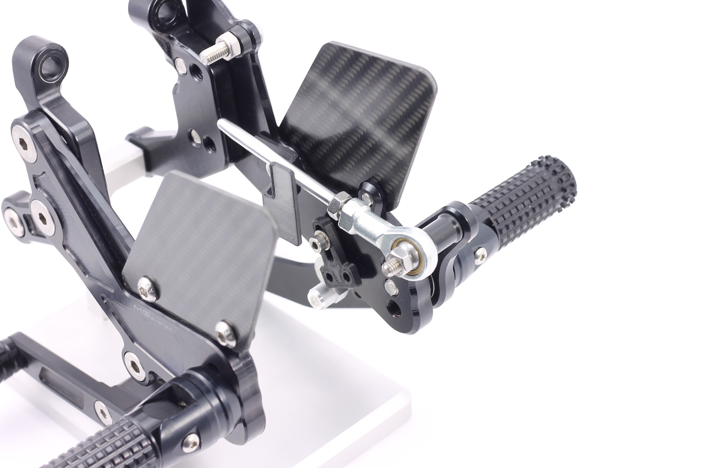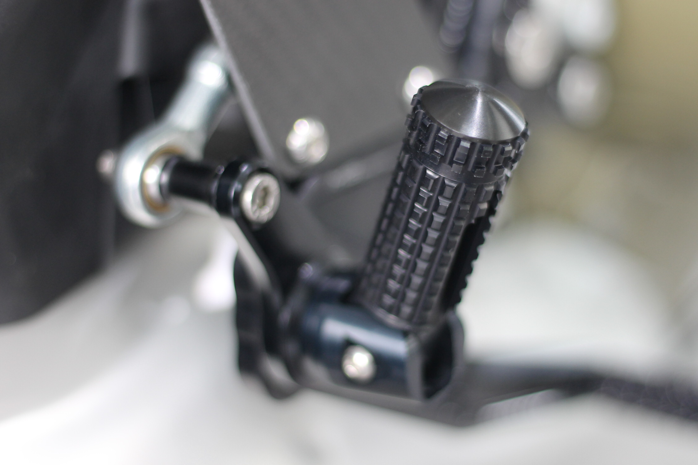 Rennsport erprobte Fussrastenanlage, voll ergonomisch verstellbar in 9 Positionen und bis zu 20 mm