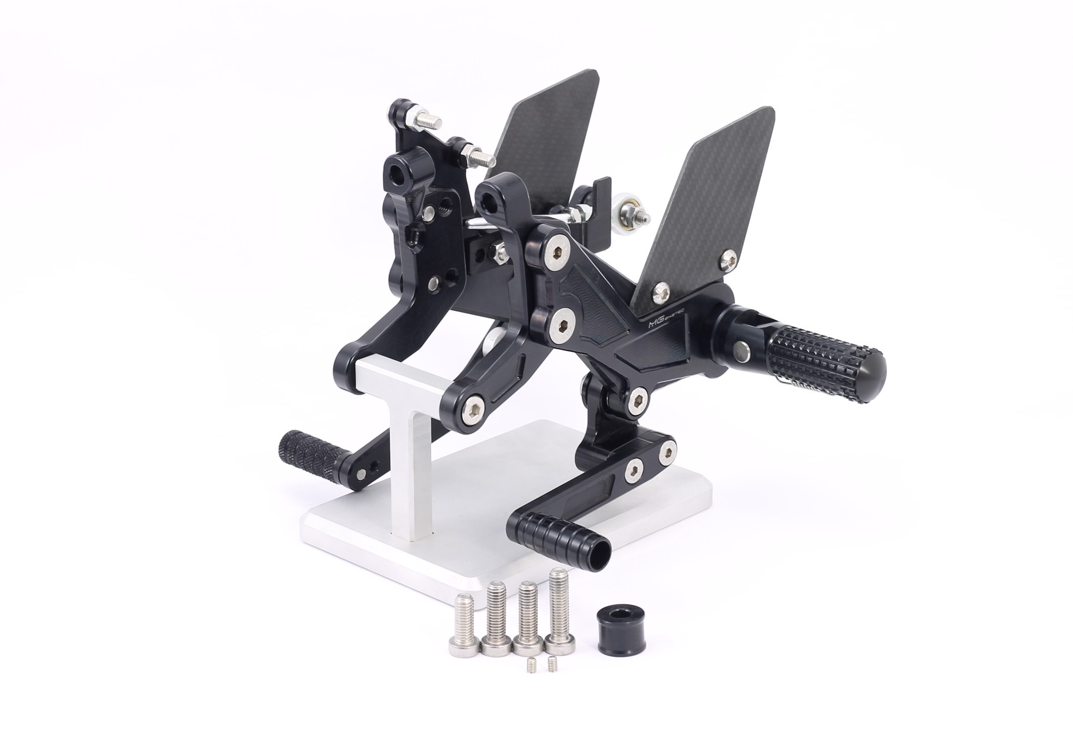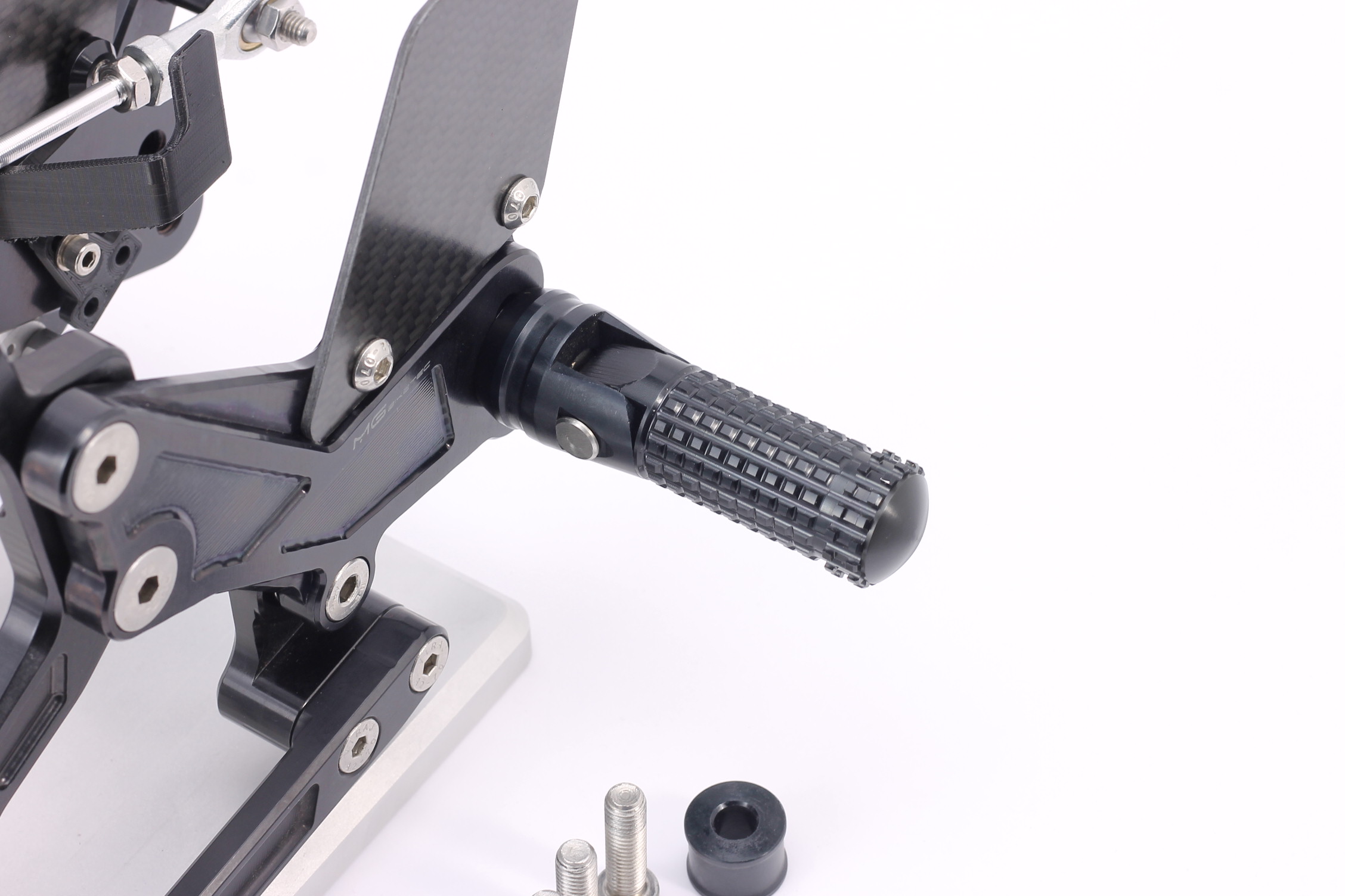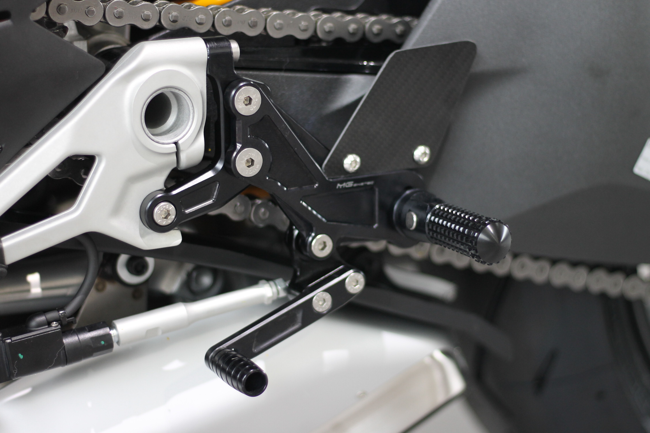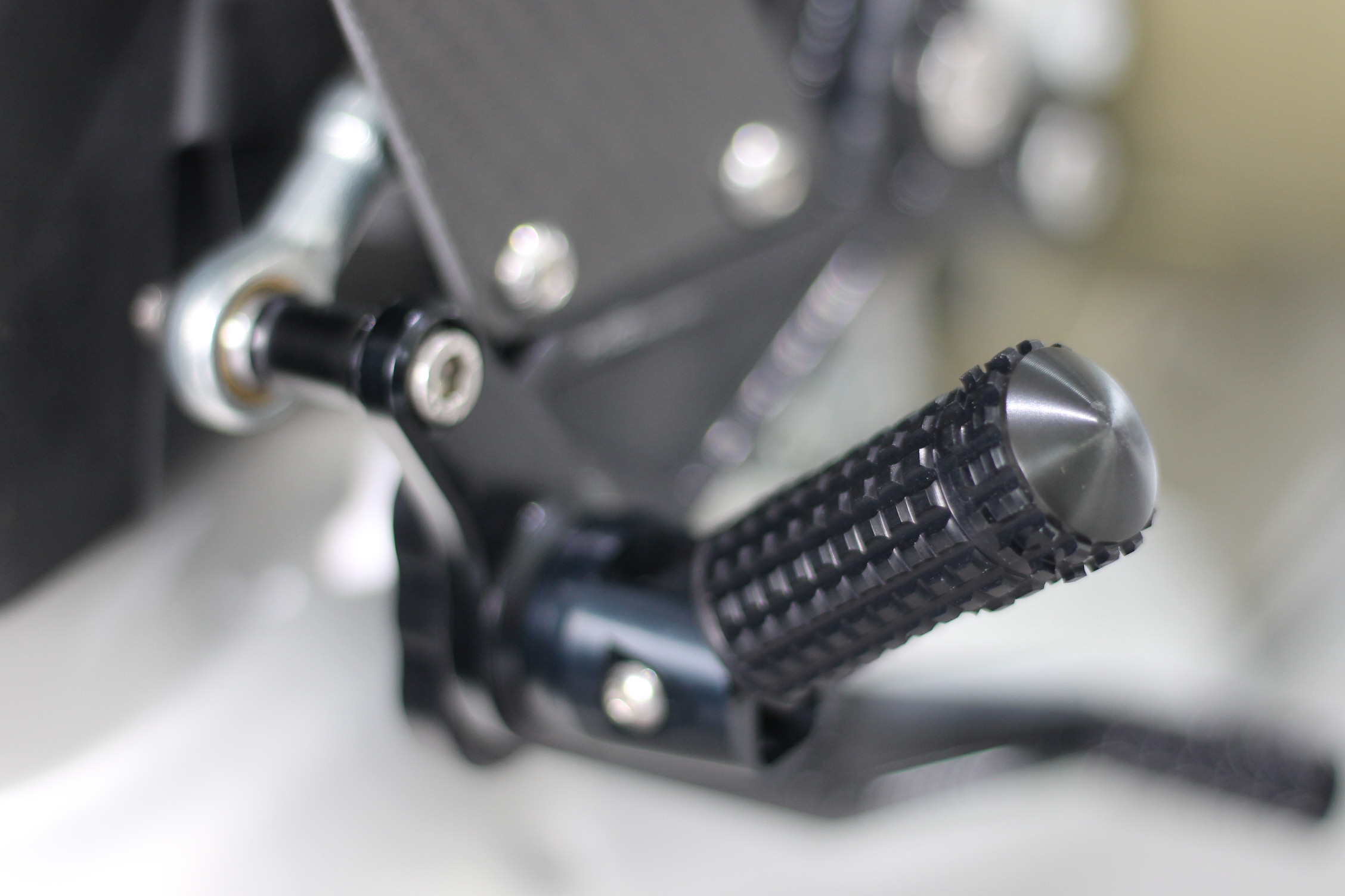 Rennsport erprobte Fussrastenanlage, voll ergonomisch verstellbar in 9 Positionen und bis zu 20 mm