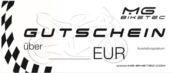 Mit einem MG Biketec Geschenkgutschein machen Sie garantiert alles richtig! Die große Auswahl an unseren Produkten für so gut wie alle gängigen Motorradmarken, lässt keine Wünsche offen.