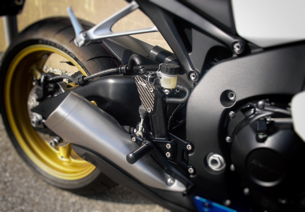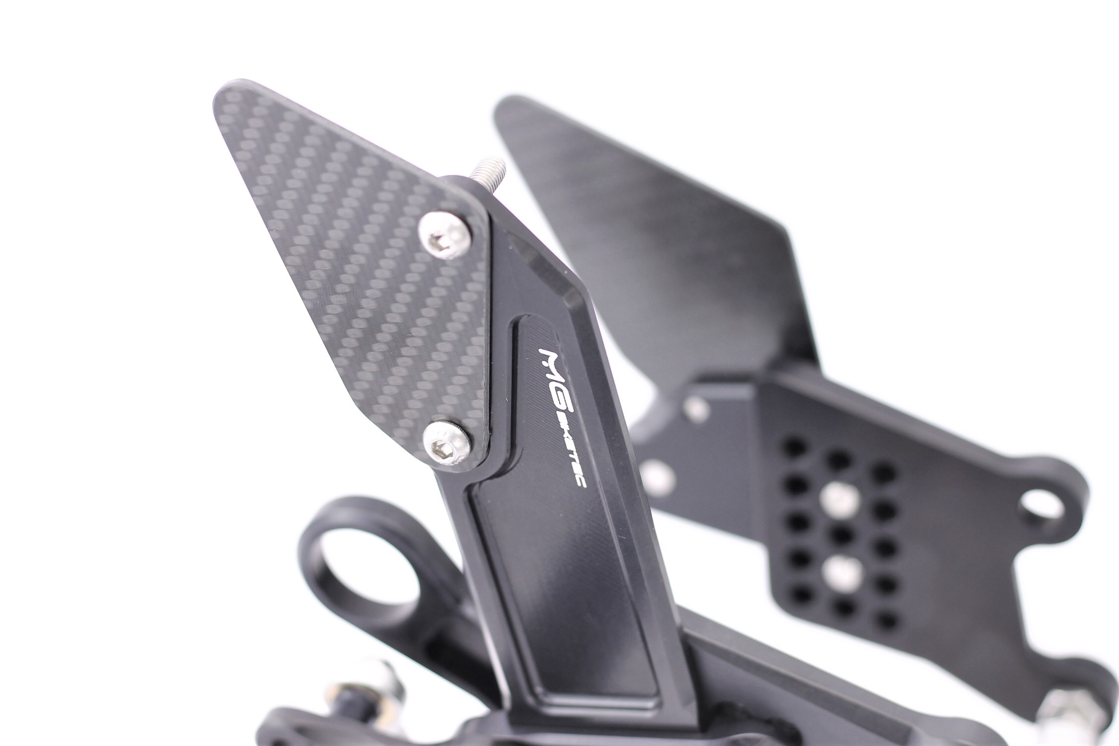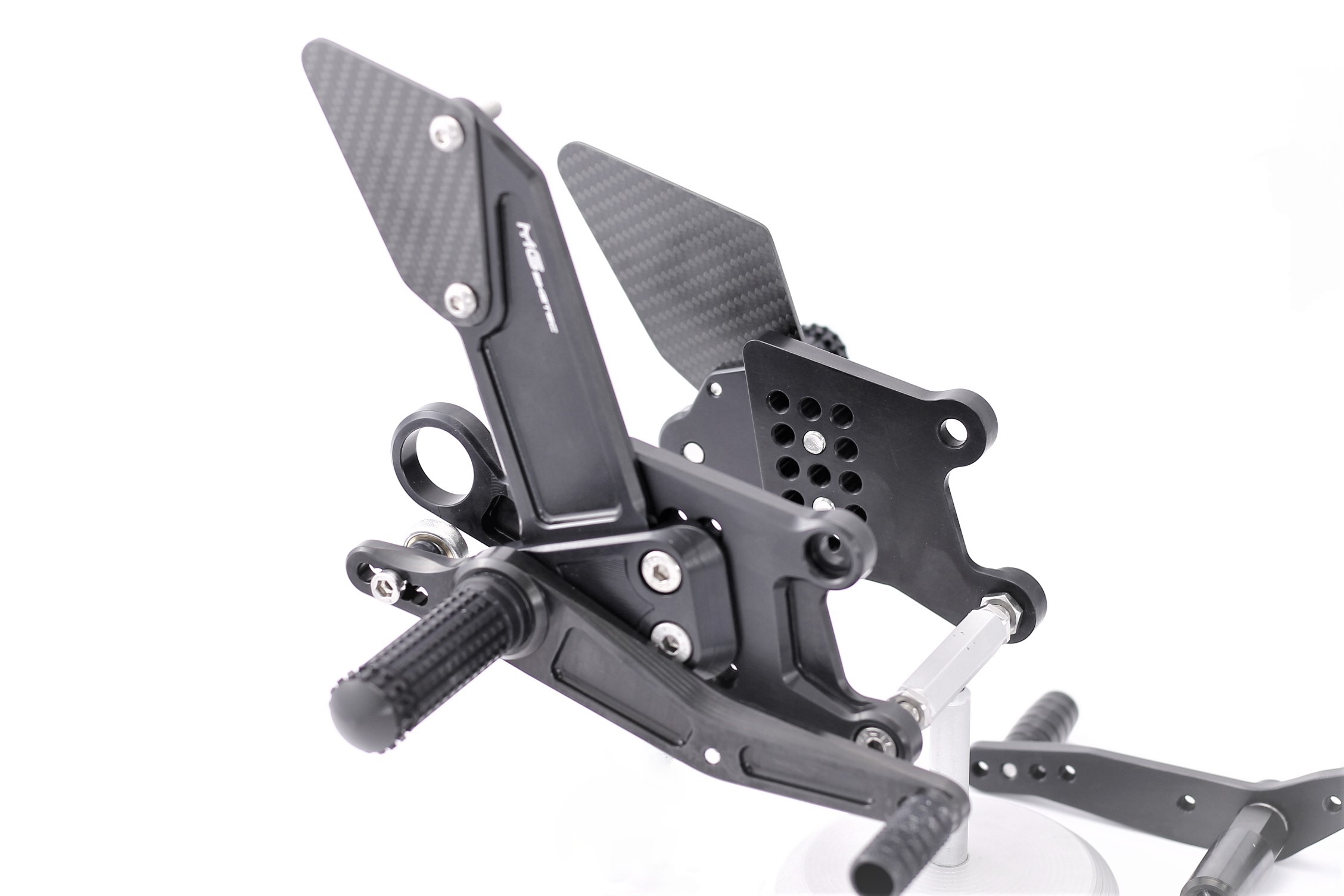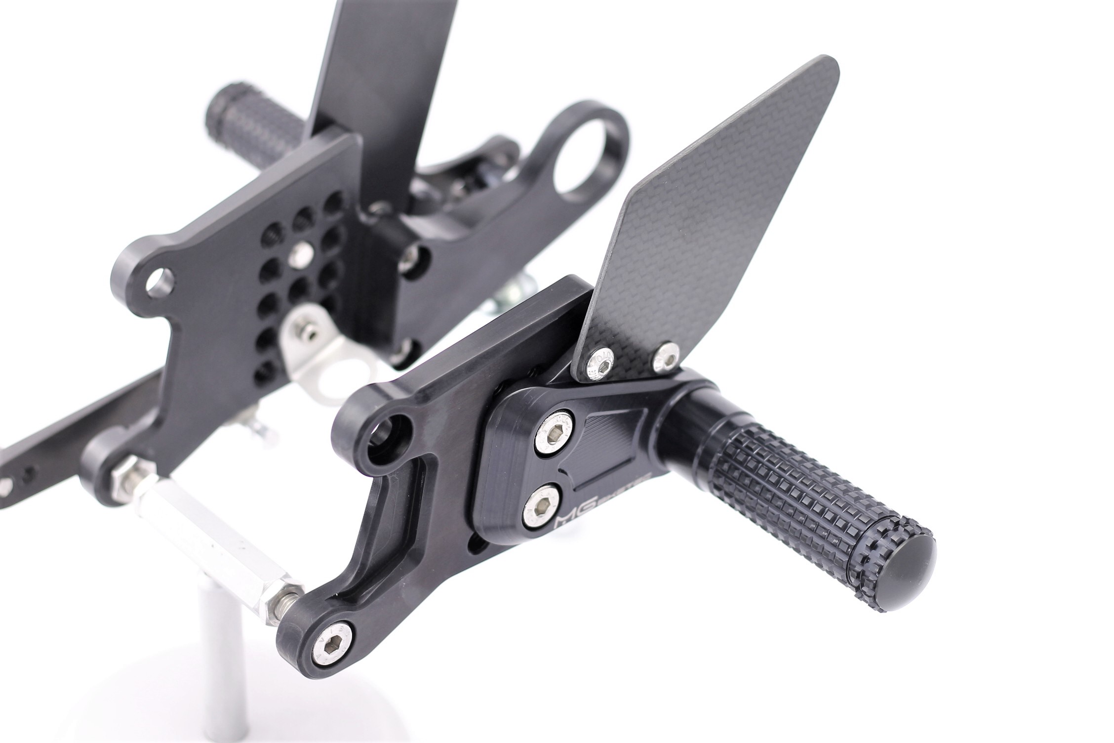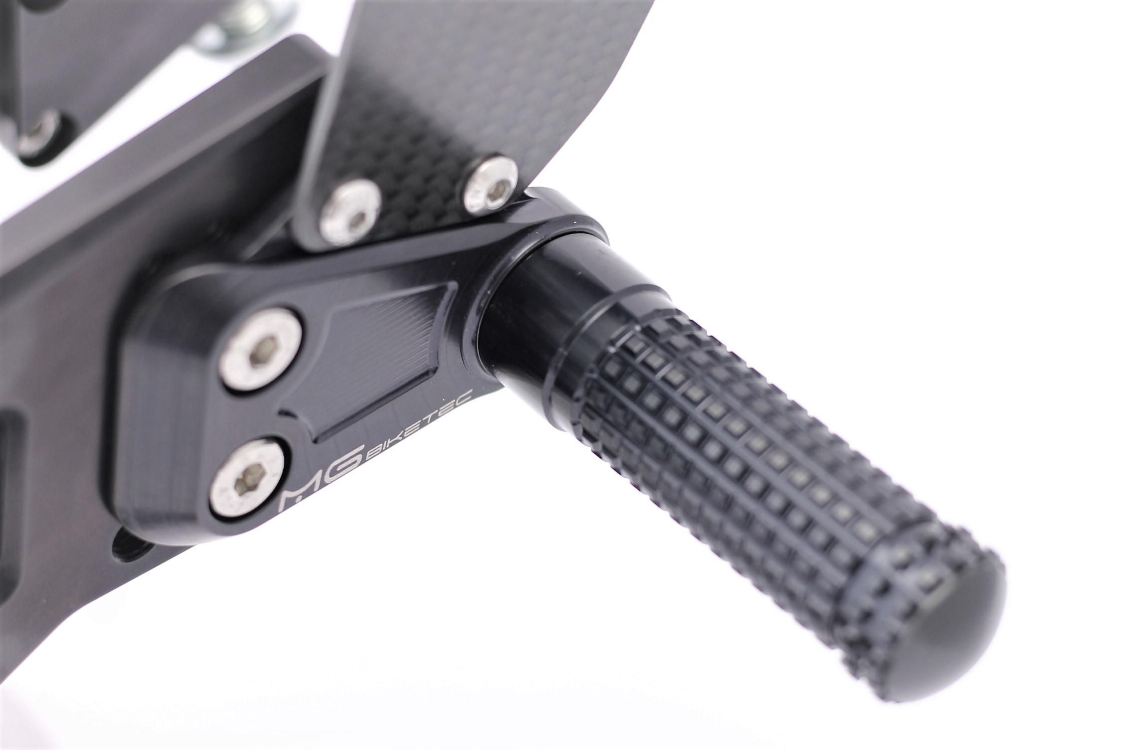 Rennsport erprobte Fussrastenanlage, voll ergonomisch verstellbar in 9 Positionen und bis zu 20 mm