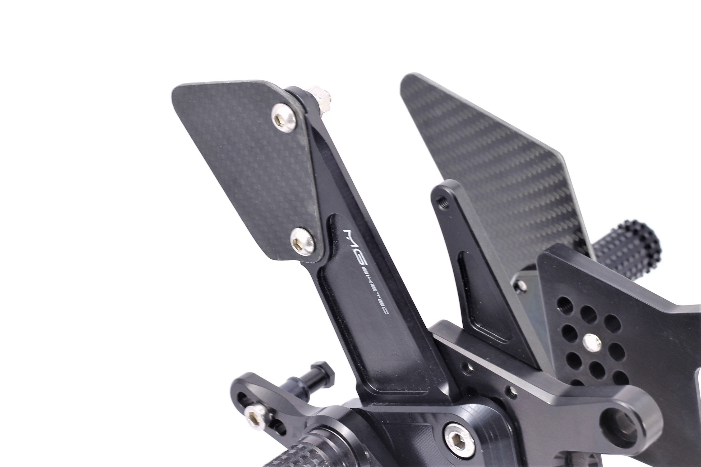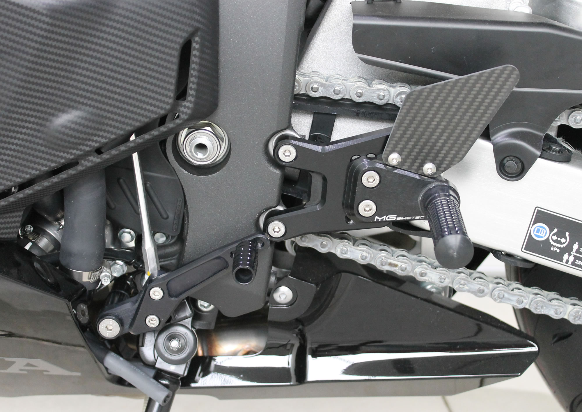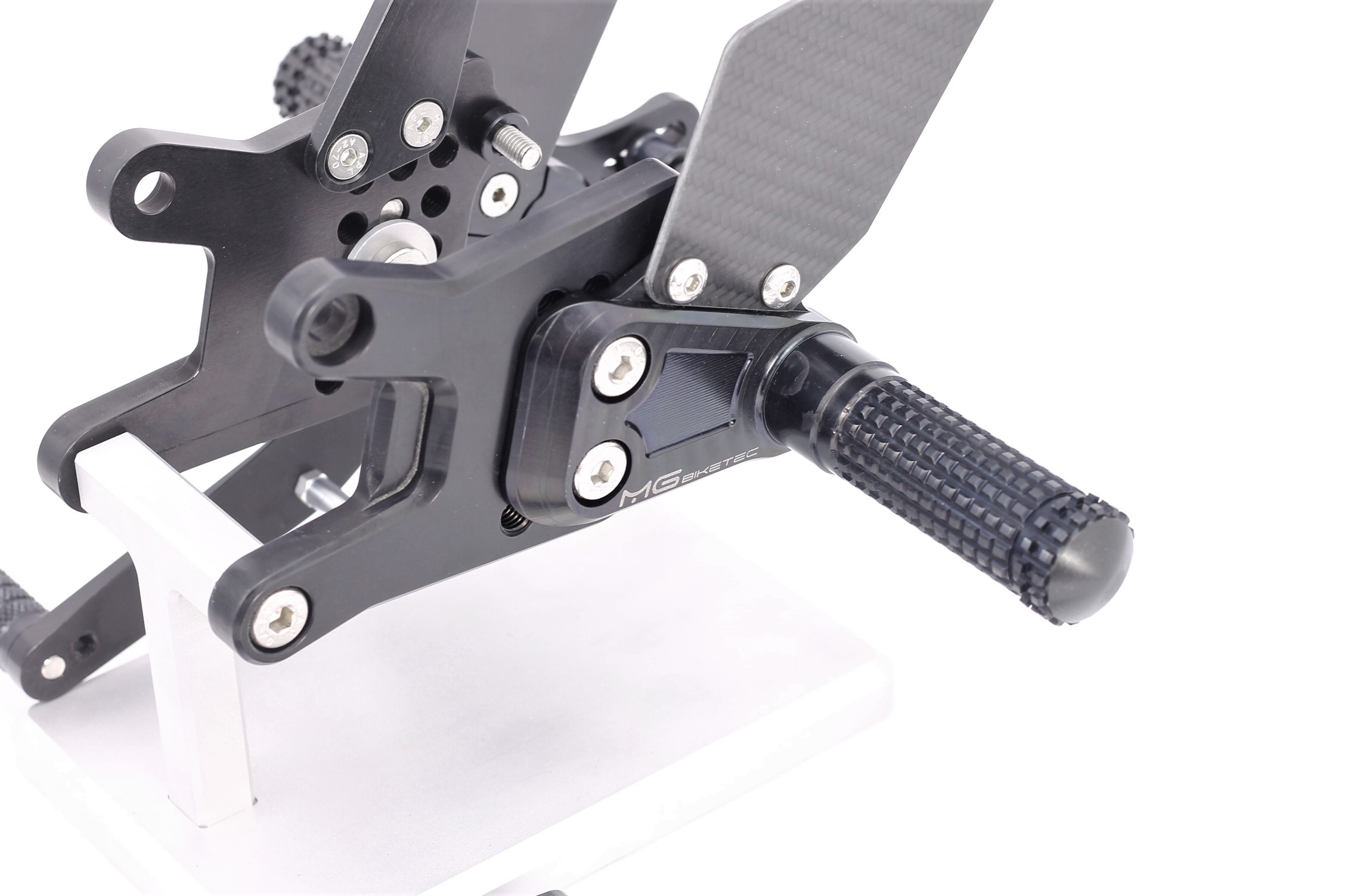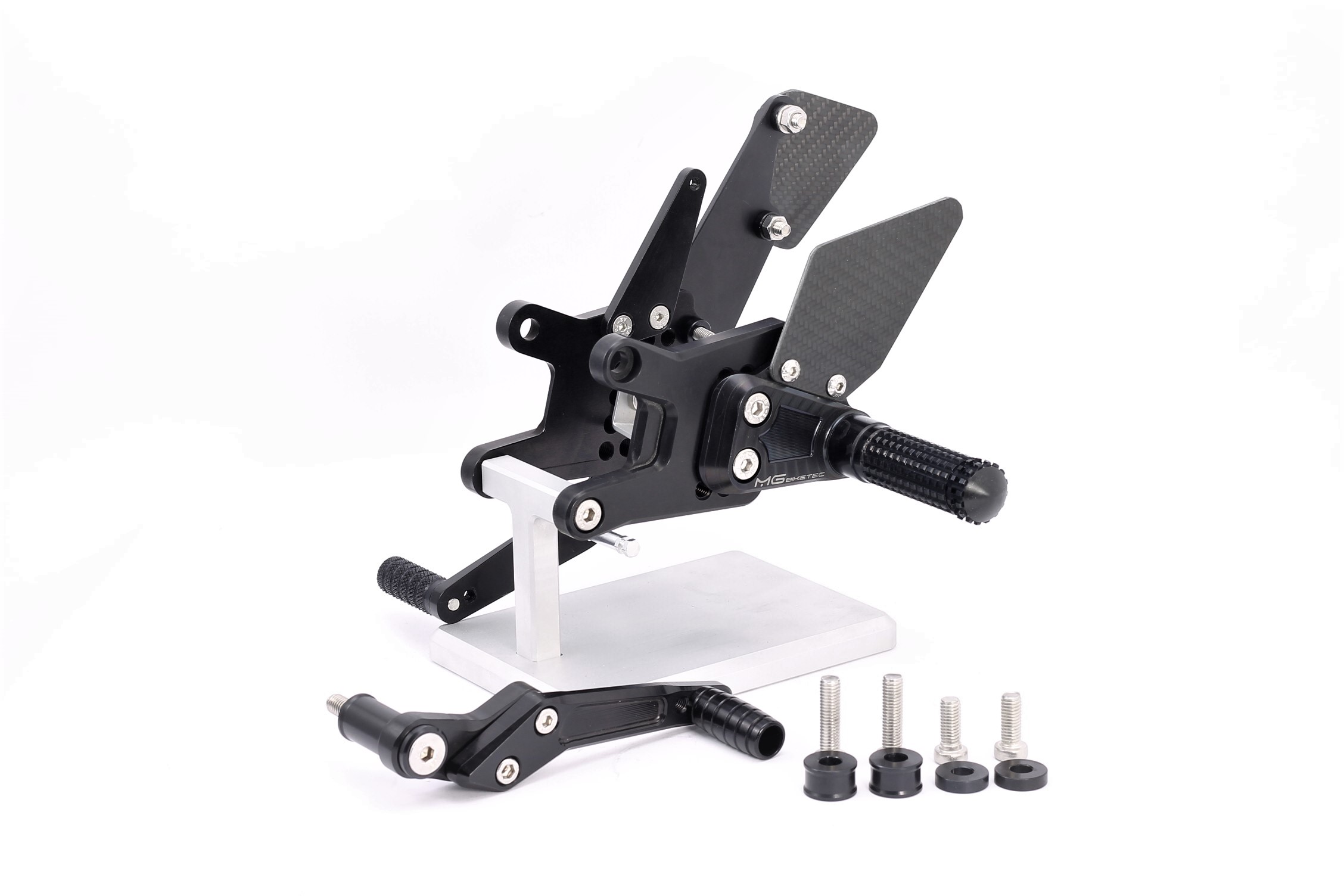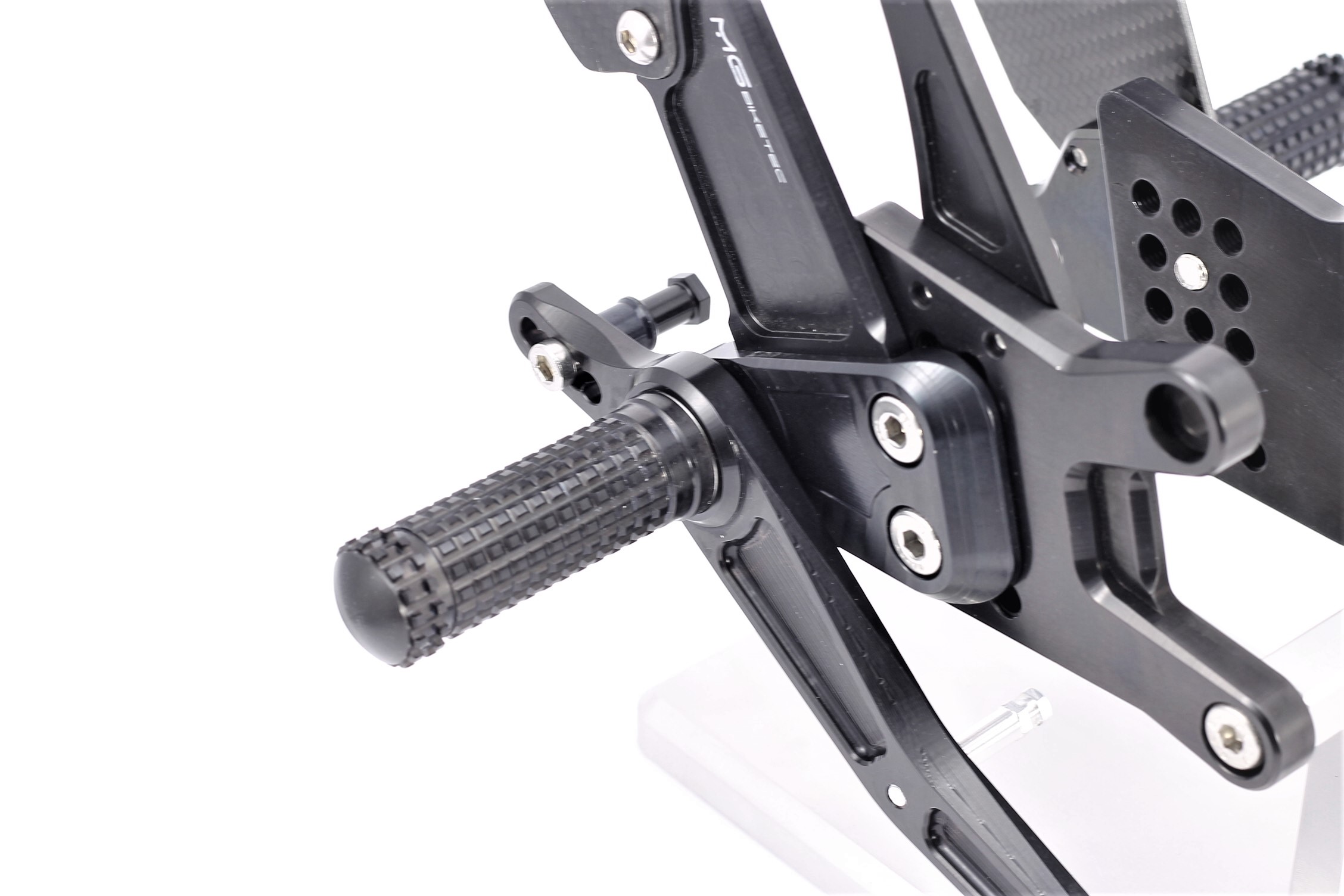 Rennsport erprobte Fussrastenanlage, voll ergonomisch verstellbar in 9 Positionen und bis zu 20 mm