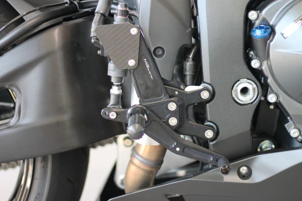 Rennsport erprobte Fussrastenanlage, voll ergonomisch verstellbar in 8 Positionen und bis zu 18 mm