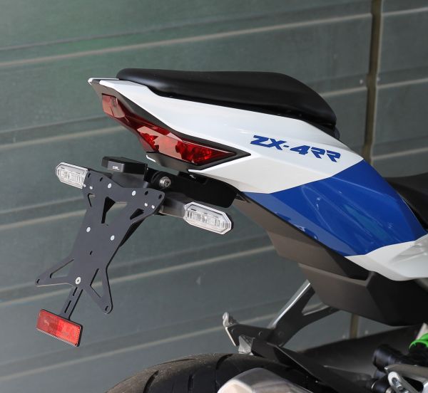 • Kurzer / kompakter & stylischer Kennzeichenträger mit Aufnahme für Kawasaki Originalblinker