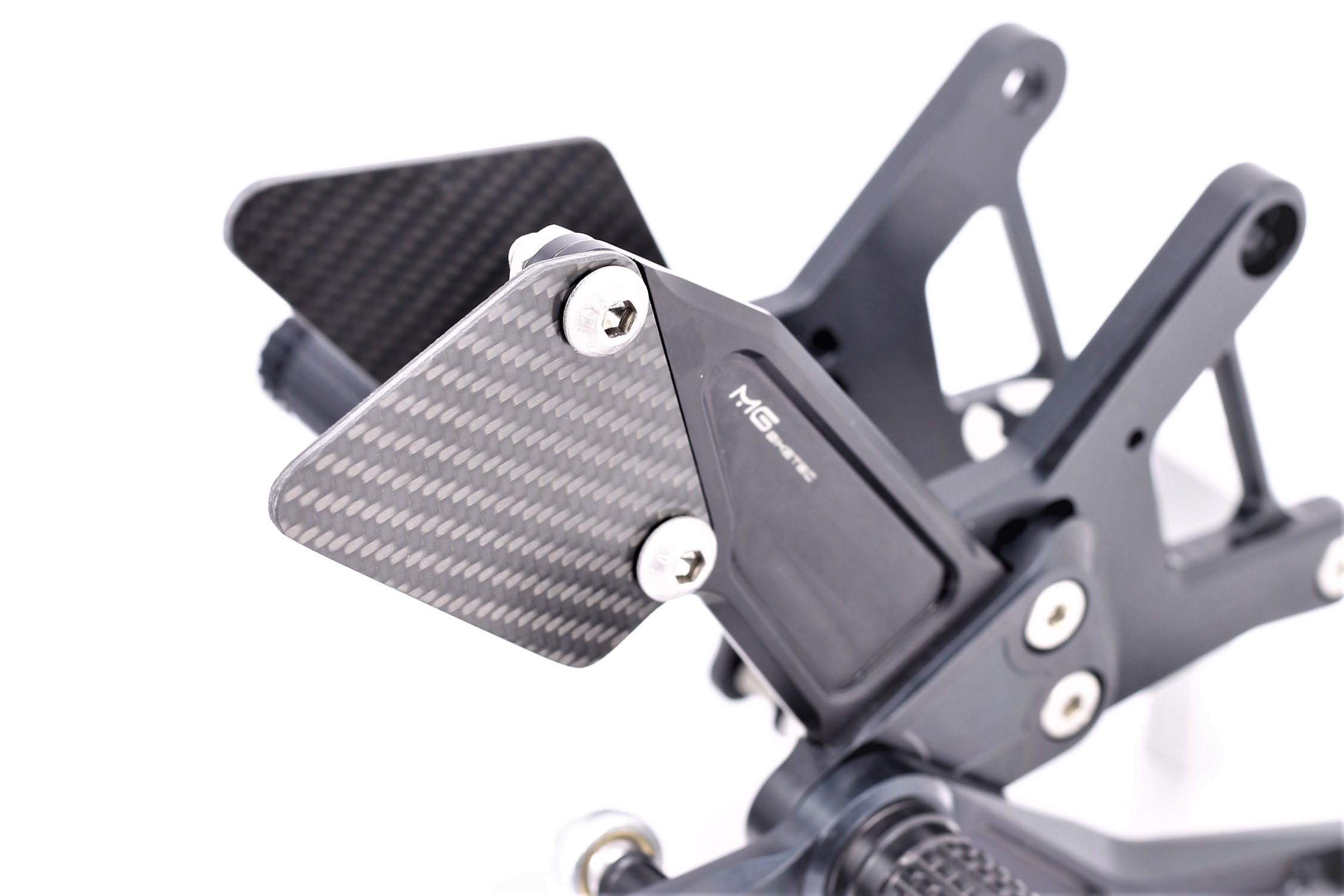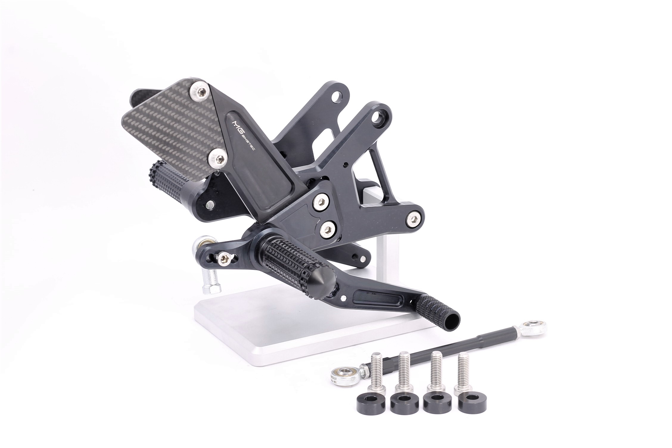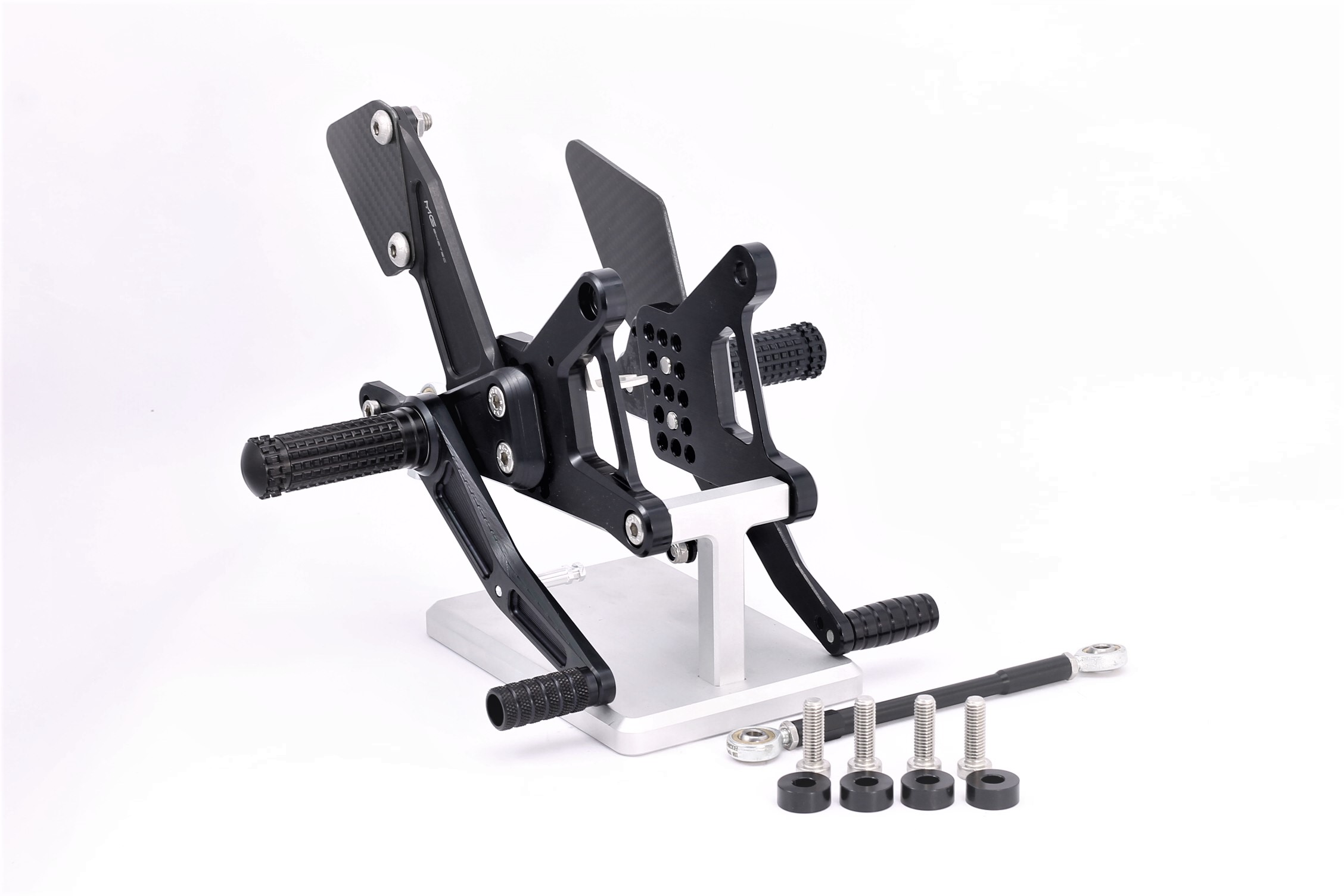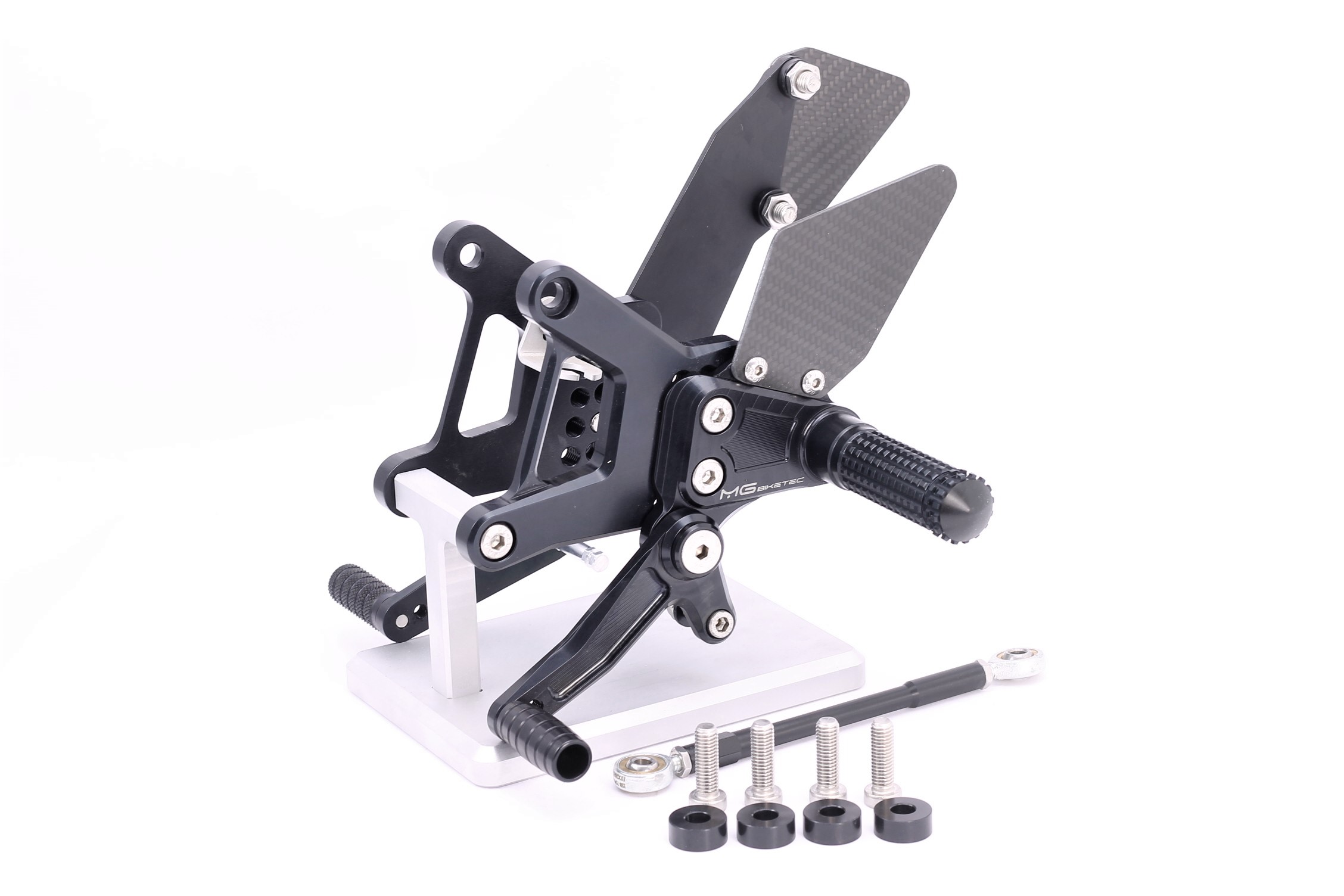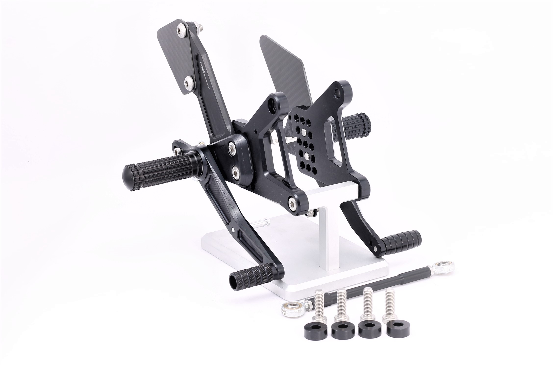 Rennsport erprobte Fussrastenanlage, voll ergonomisch verstellbar in 9 Positionen und bis zu 20 mm