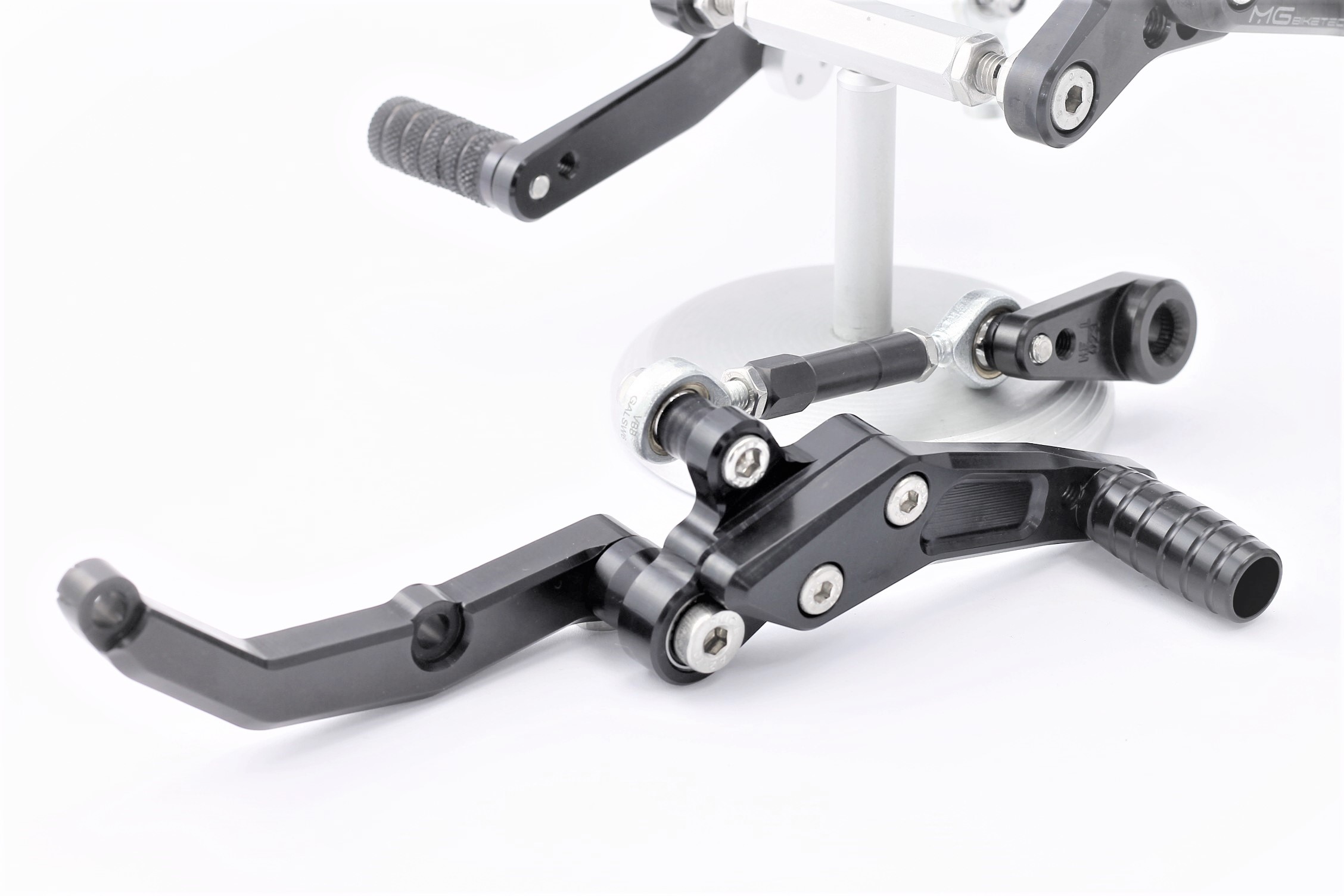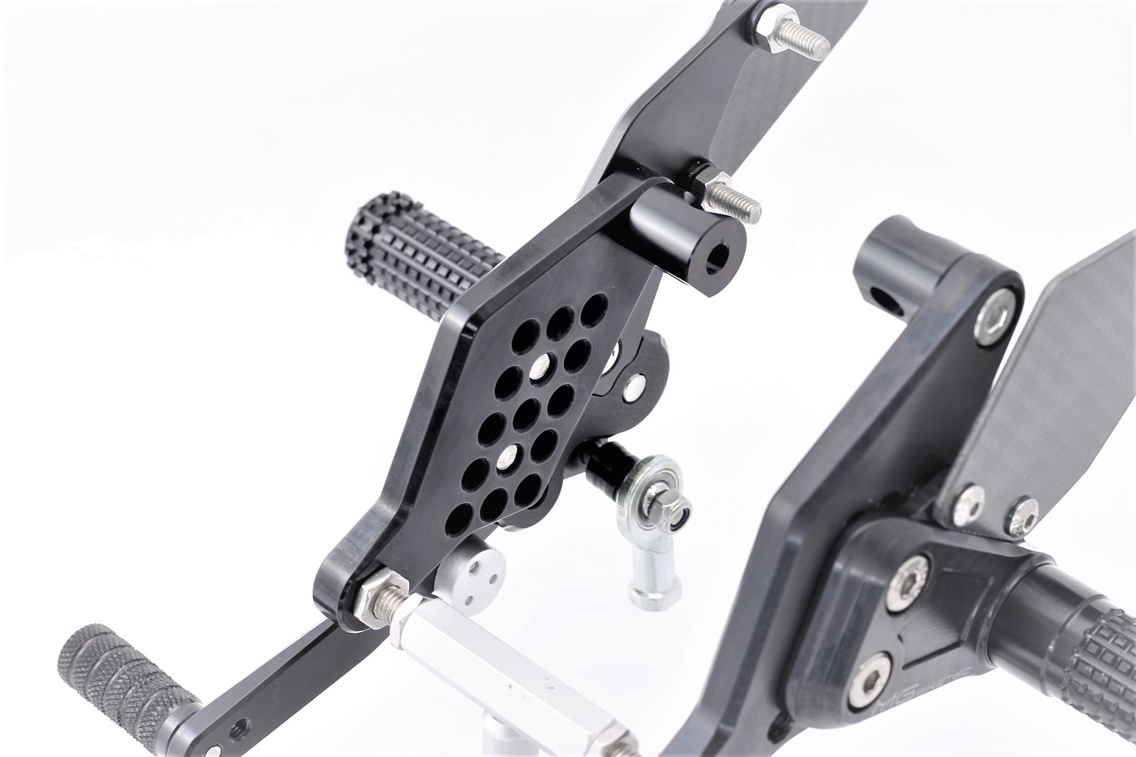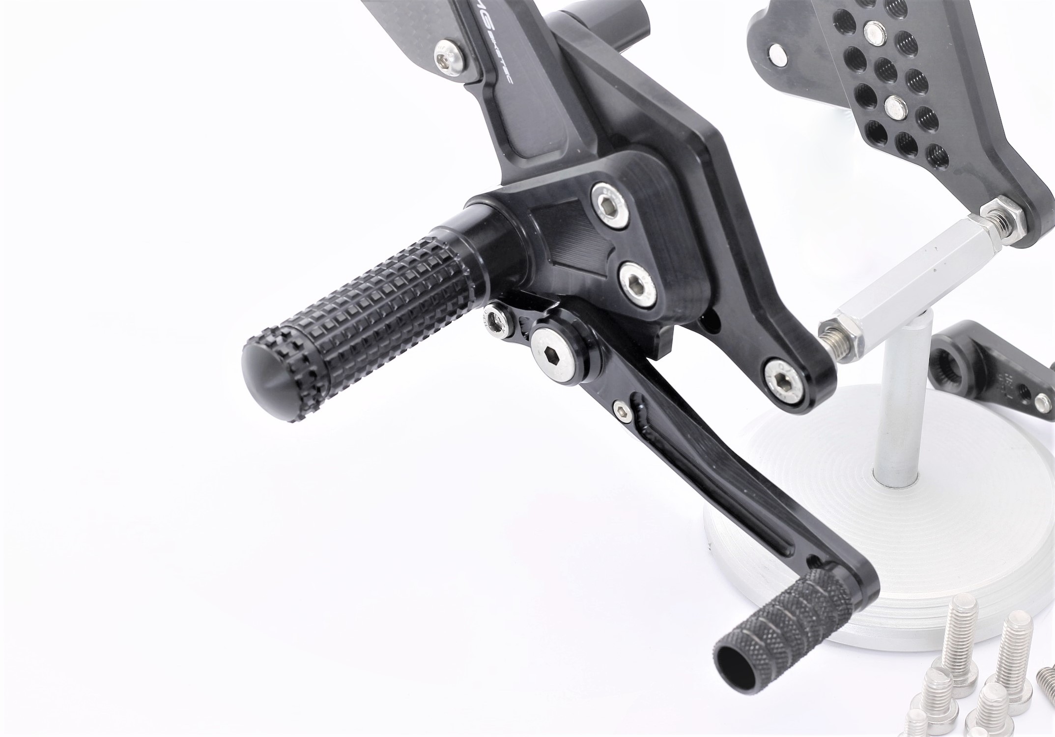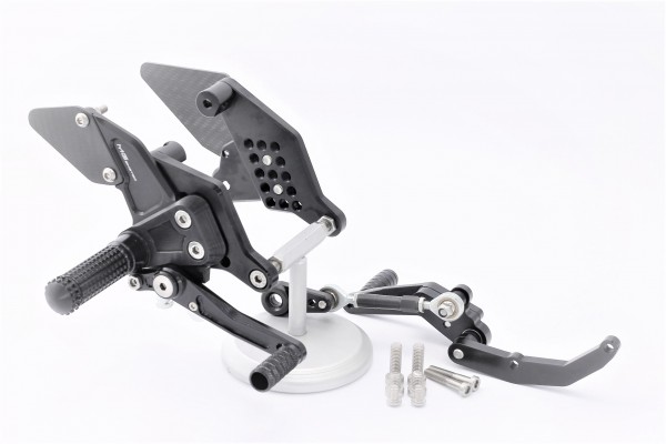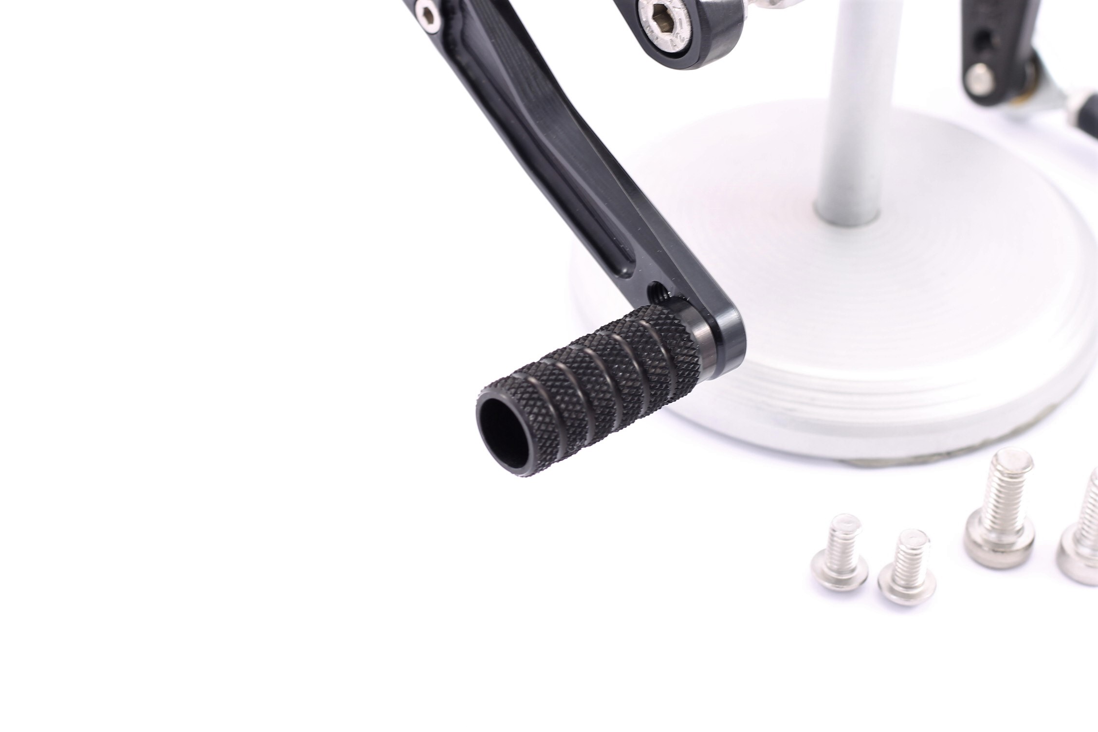 Rennsport erprobte Fussrastenanlage, voll ergonomisch verstellbar in 9 Positionen und bis zu 77 mm - Ohne ABE!