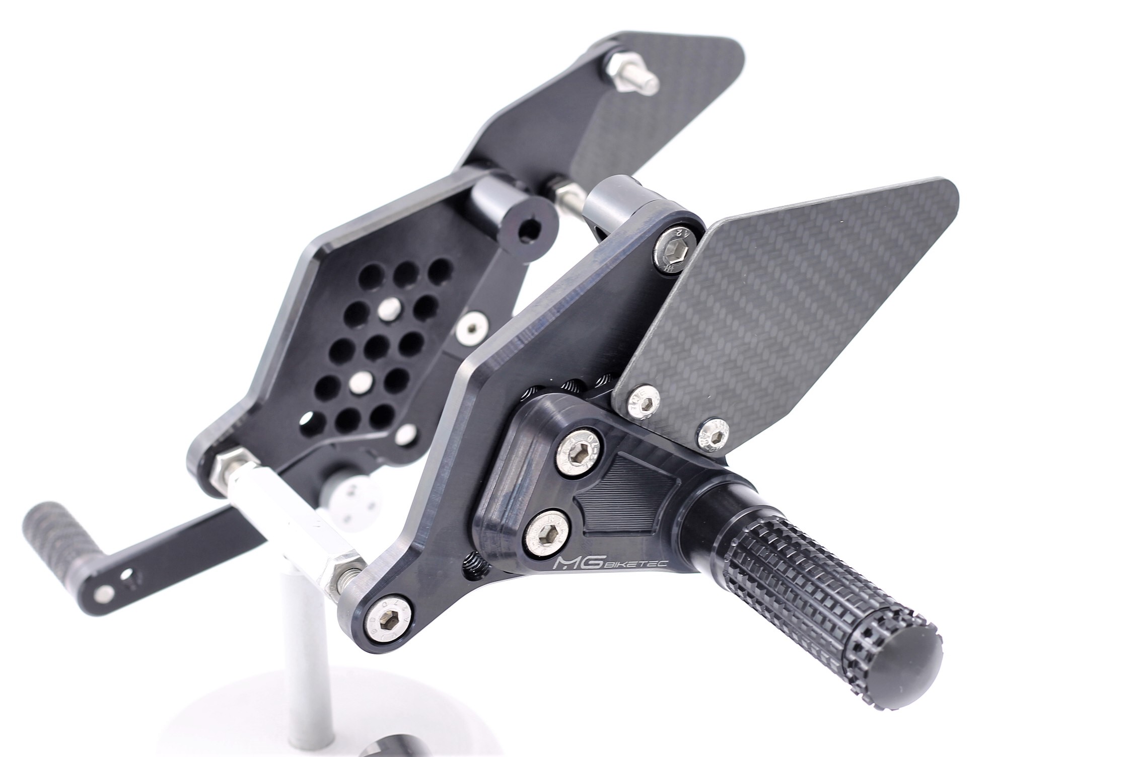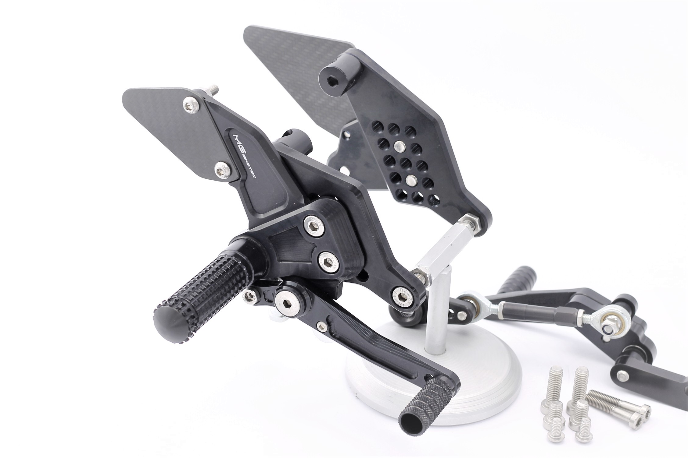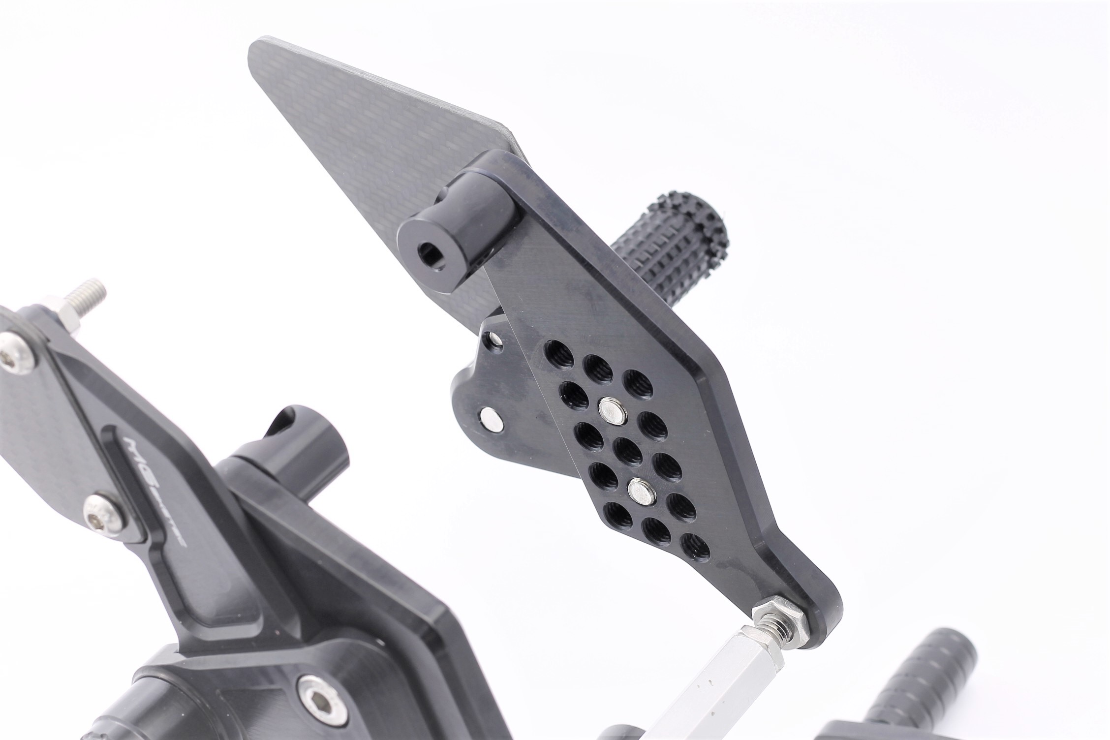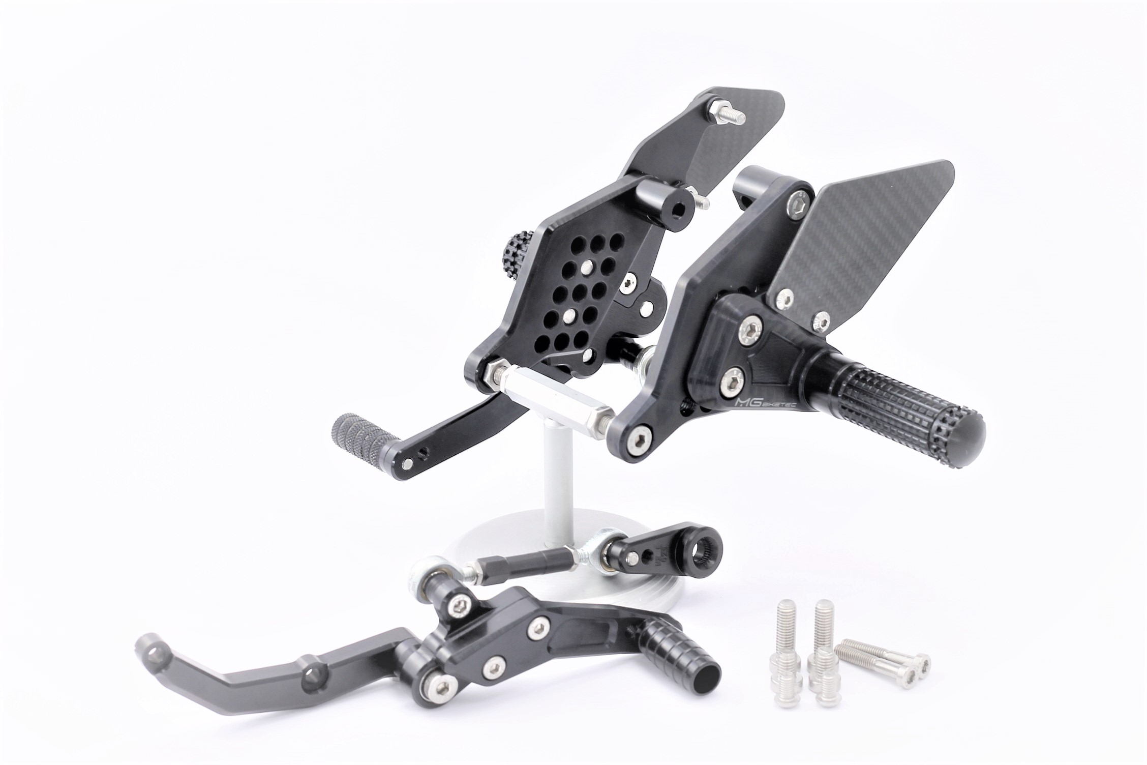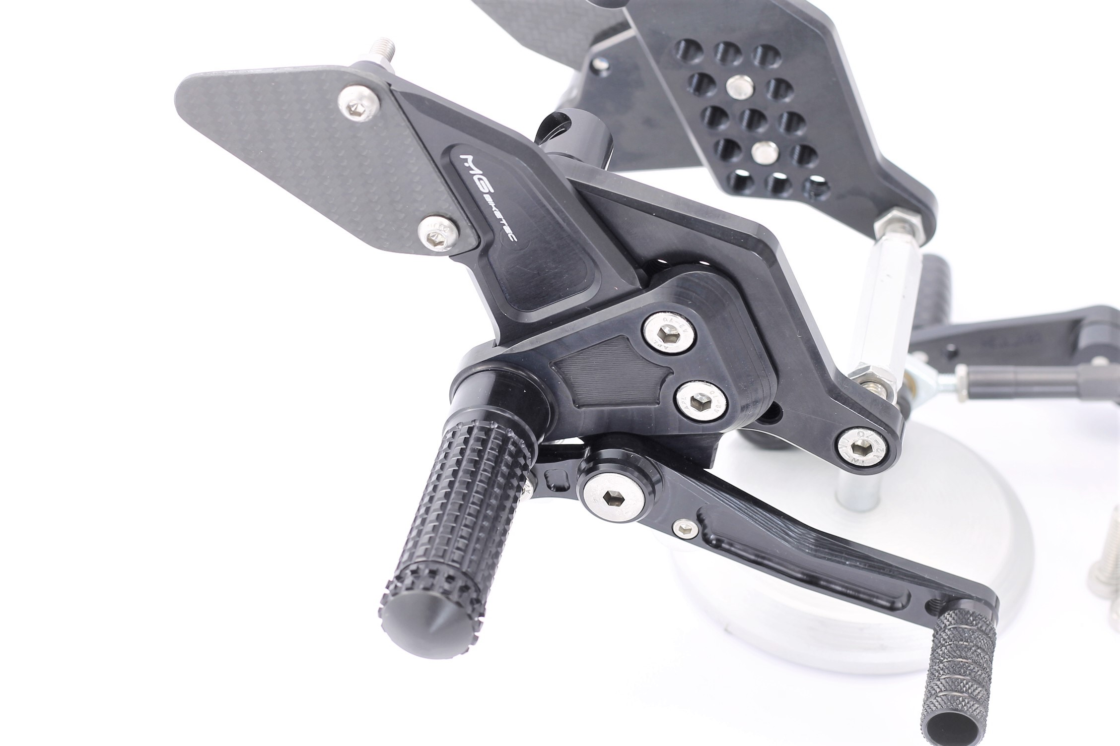 Rennsport erprobte Fussrastenanlage, voll ergonomisch verstellbar in 9 Positionen und bis zu 77 mm - Ohne ABE!