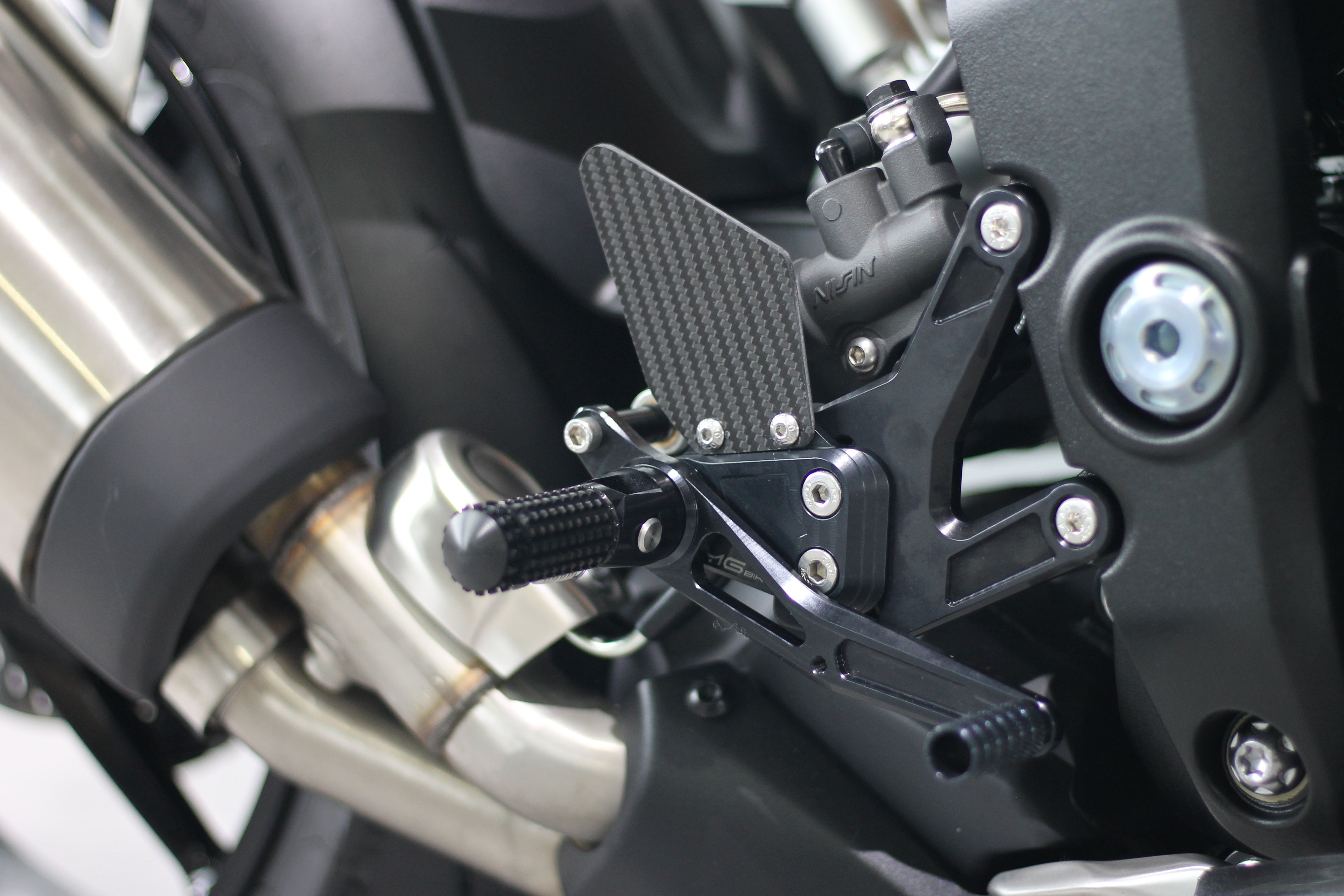 Rennsport erprobte Fussrastenanlage, voll ergonomisch verstellbar in 8 Positionen und bis zu 20 mm - Ohne ABE!