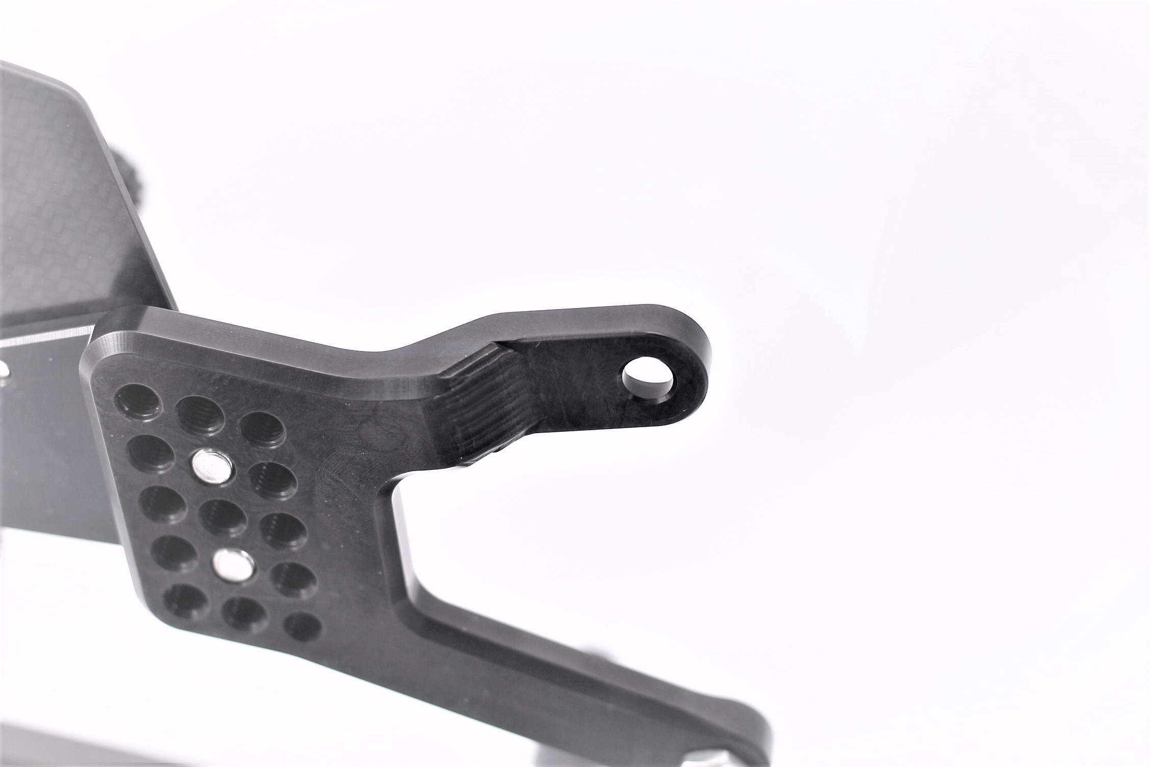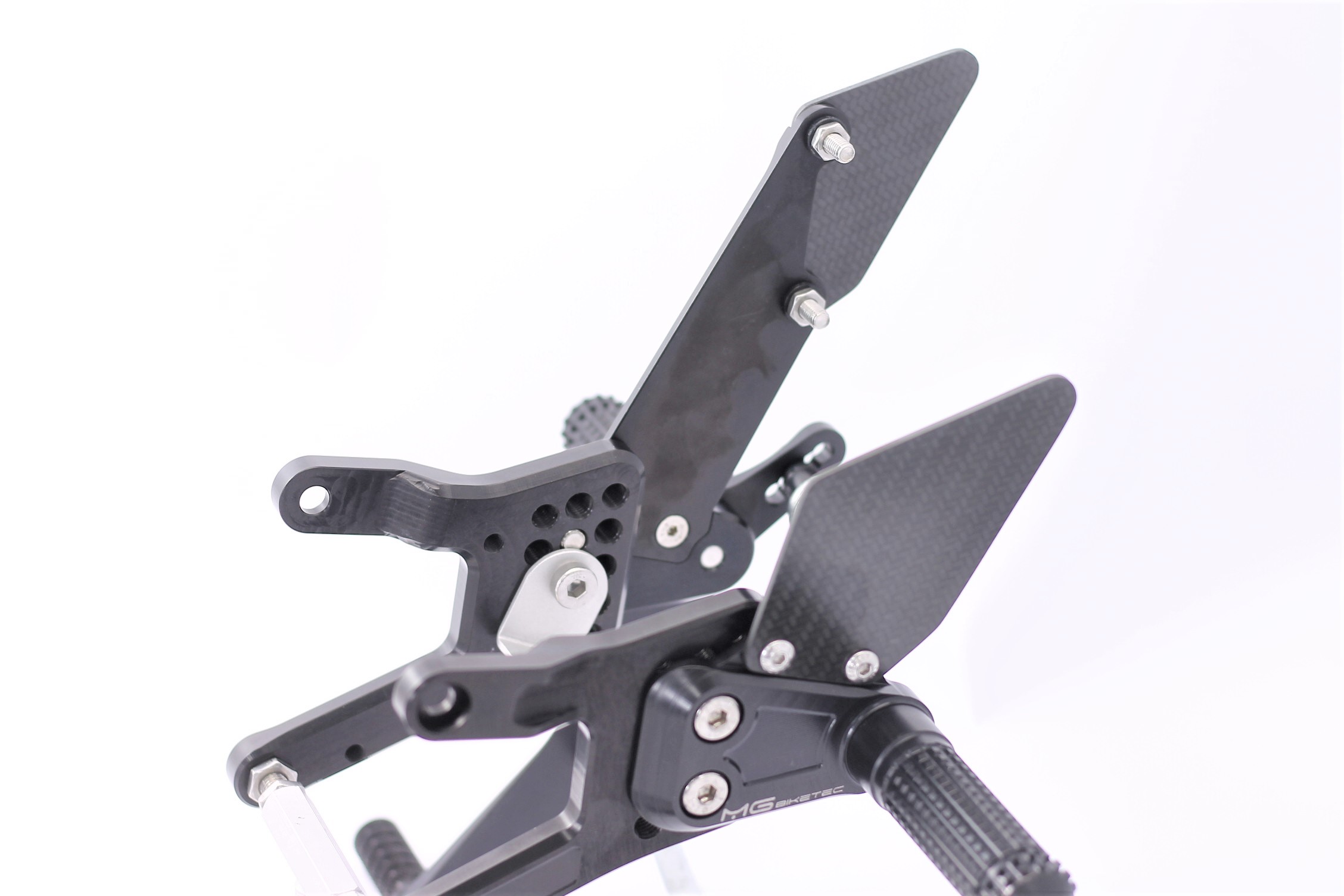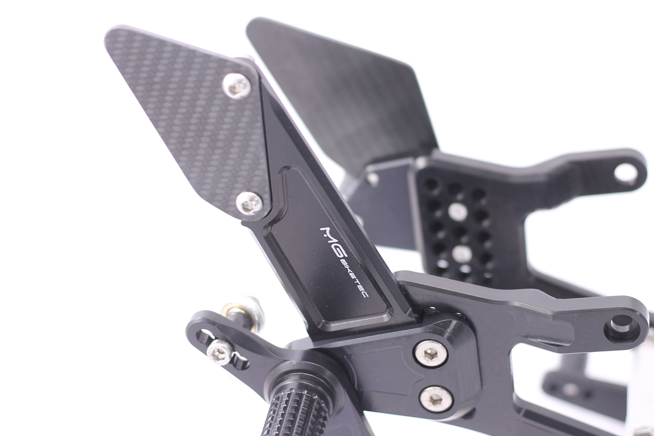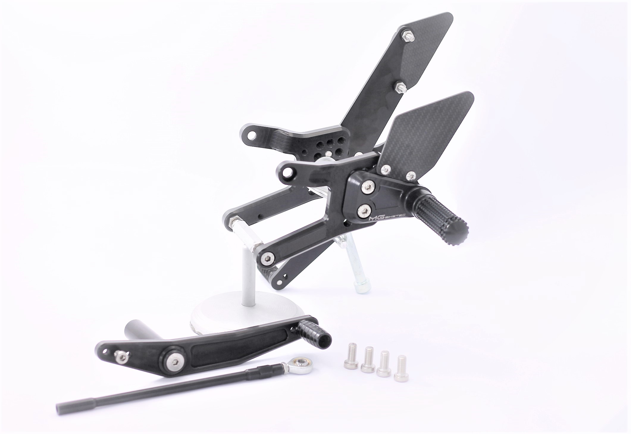 Rennsport erprobte Fussrastenanlage, voll ergonomisch verstellbar in 9 Positionen und bis zu 20 mm