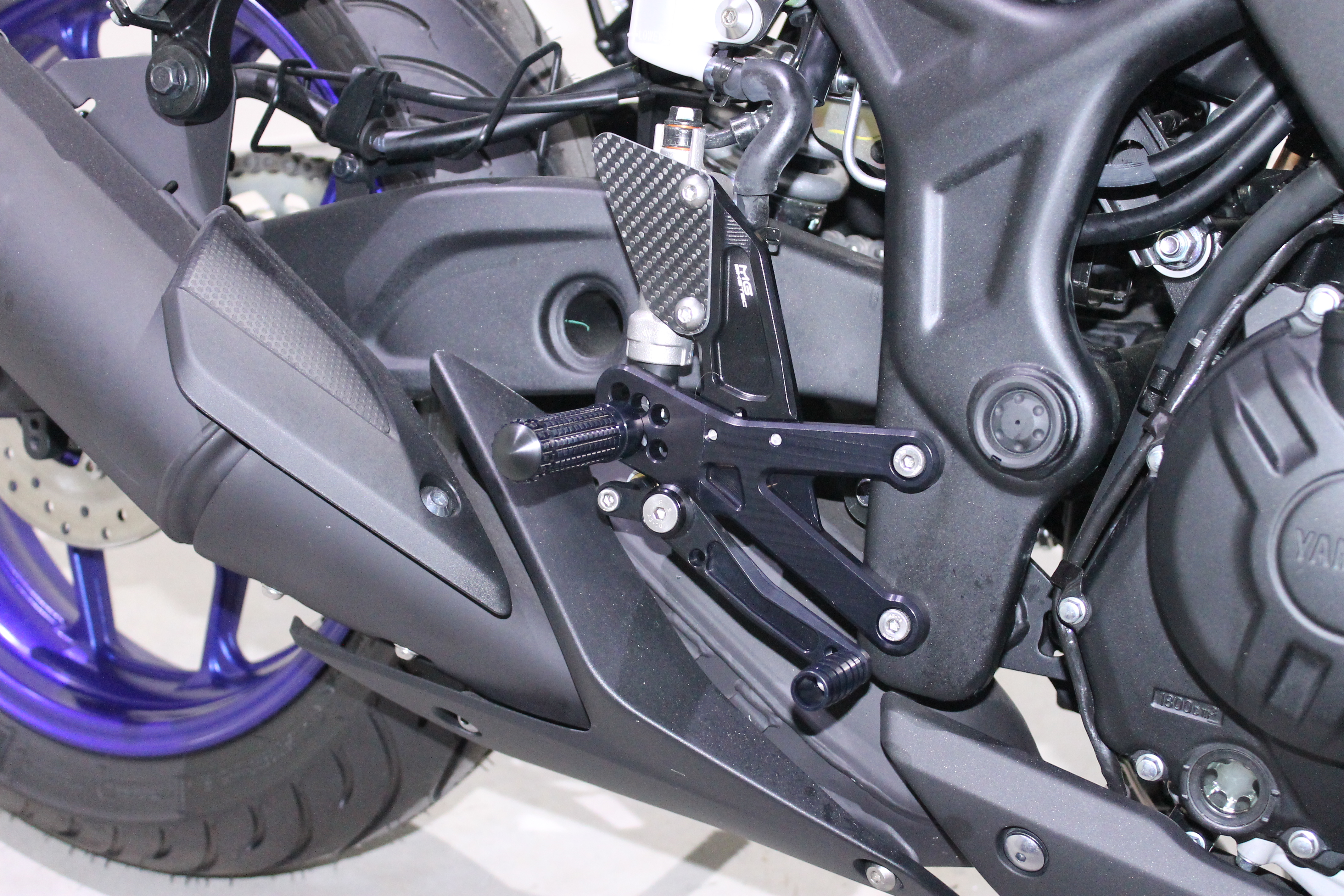 Rennsport erprobte Fussrastenanlage, voll ergonomisch verstellbar in 9 Positionen und bis zu 20 mm