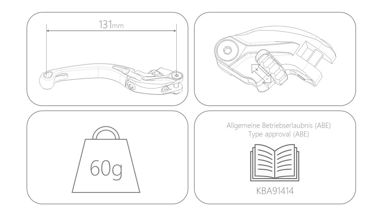 • Lever fully anodized in black, adjuster dial available in black, gold, blue, red, matt-silver, orange