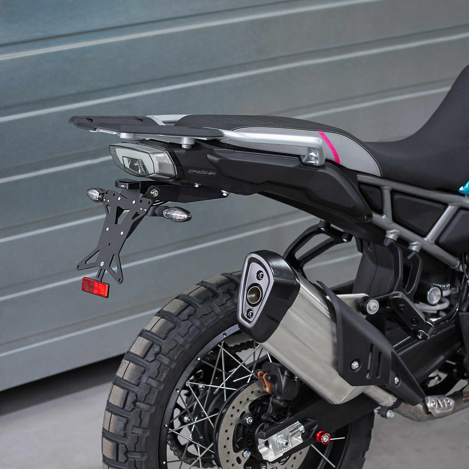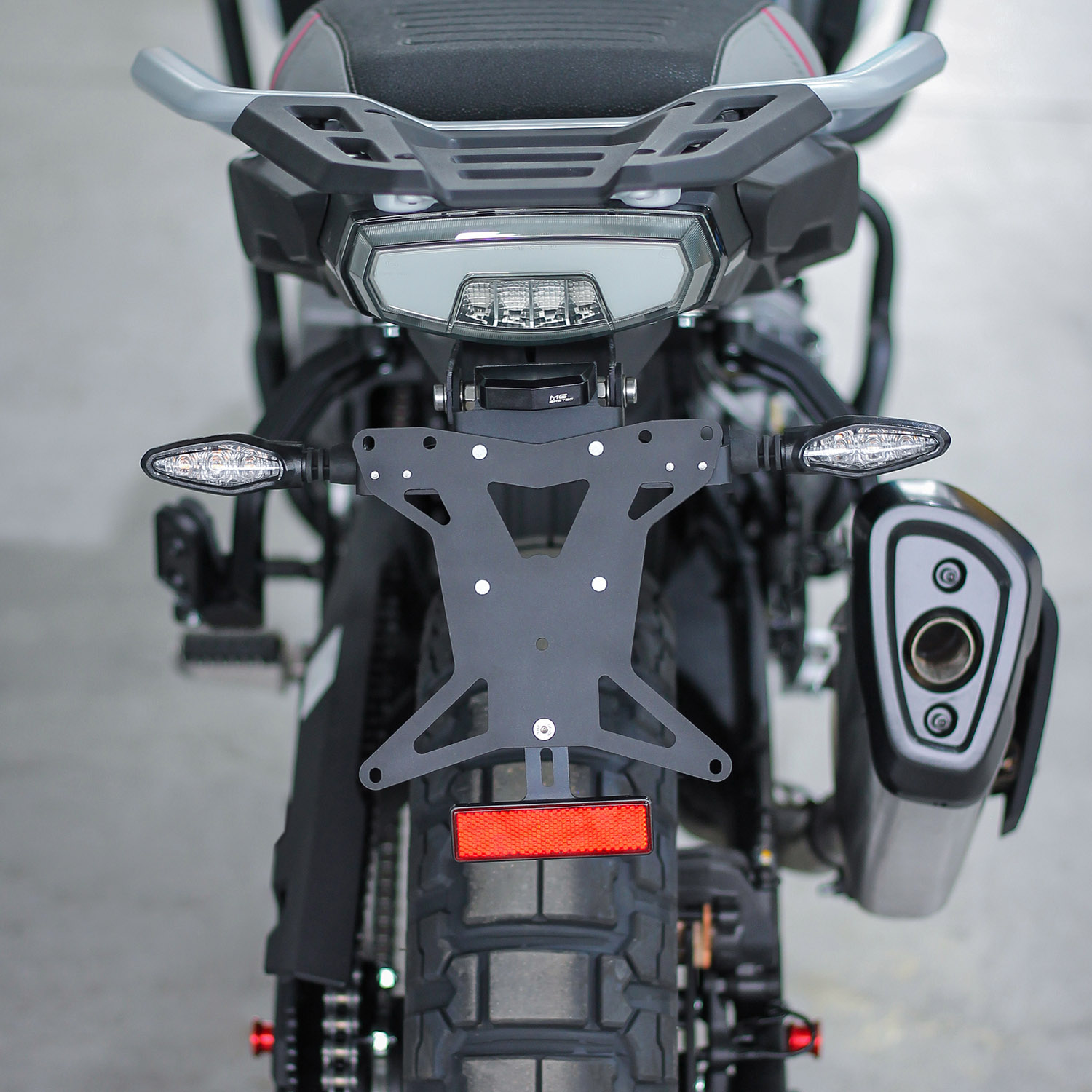 • Portamatrículas corto, compacto y elegante con soporte para luz trasera original, incluyendo intermitentes.