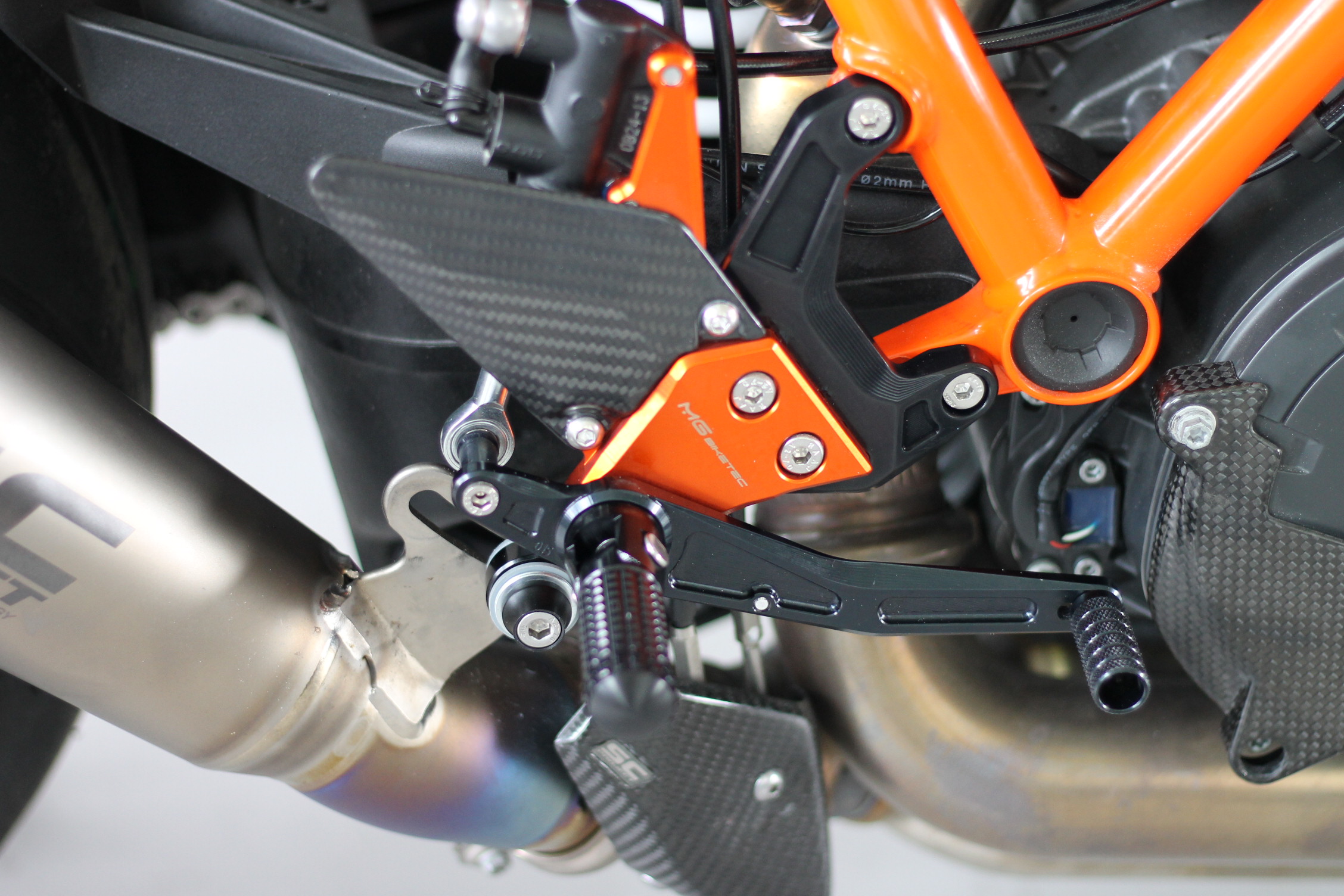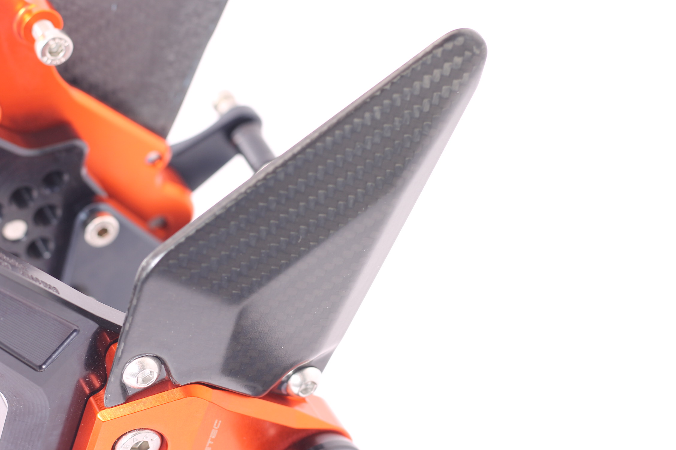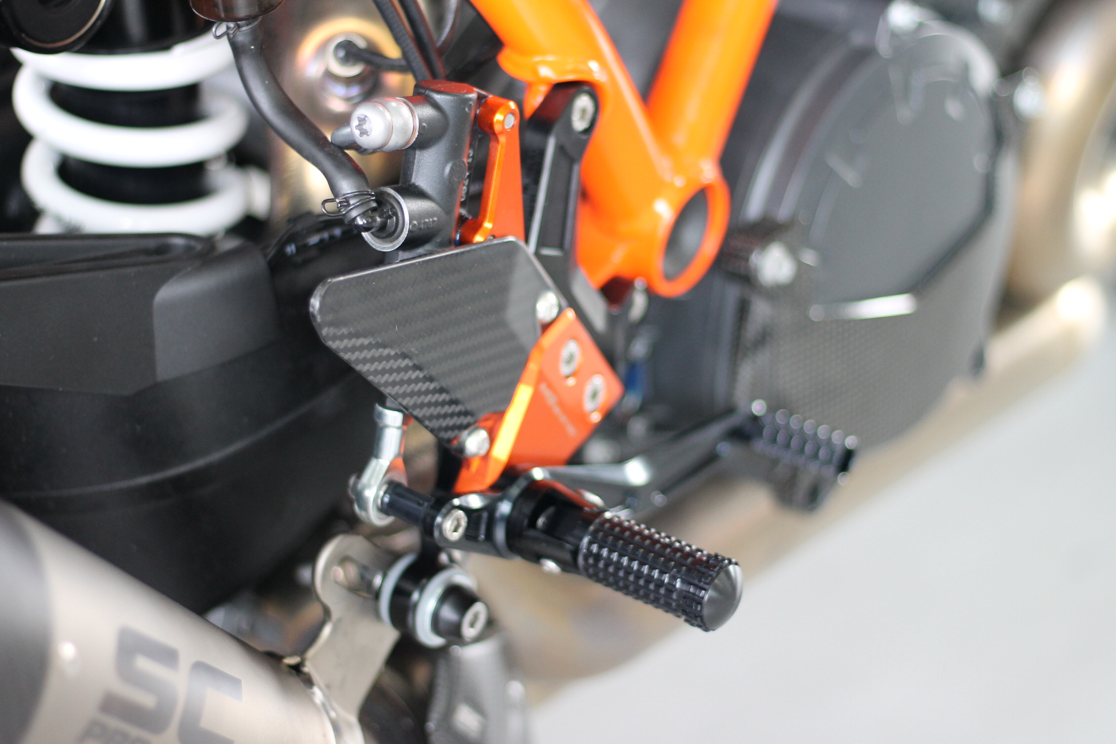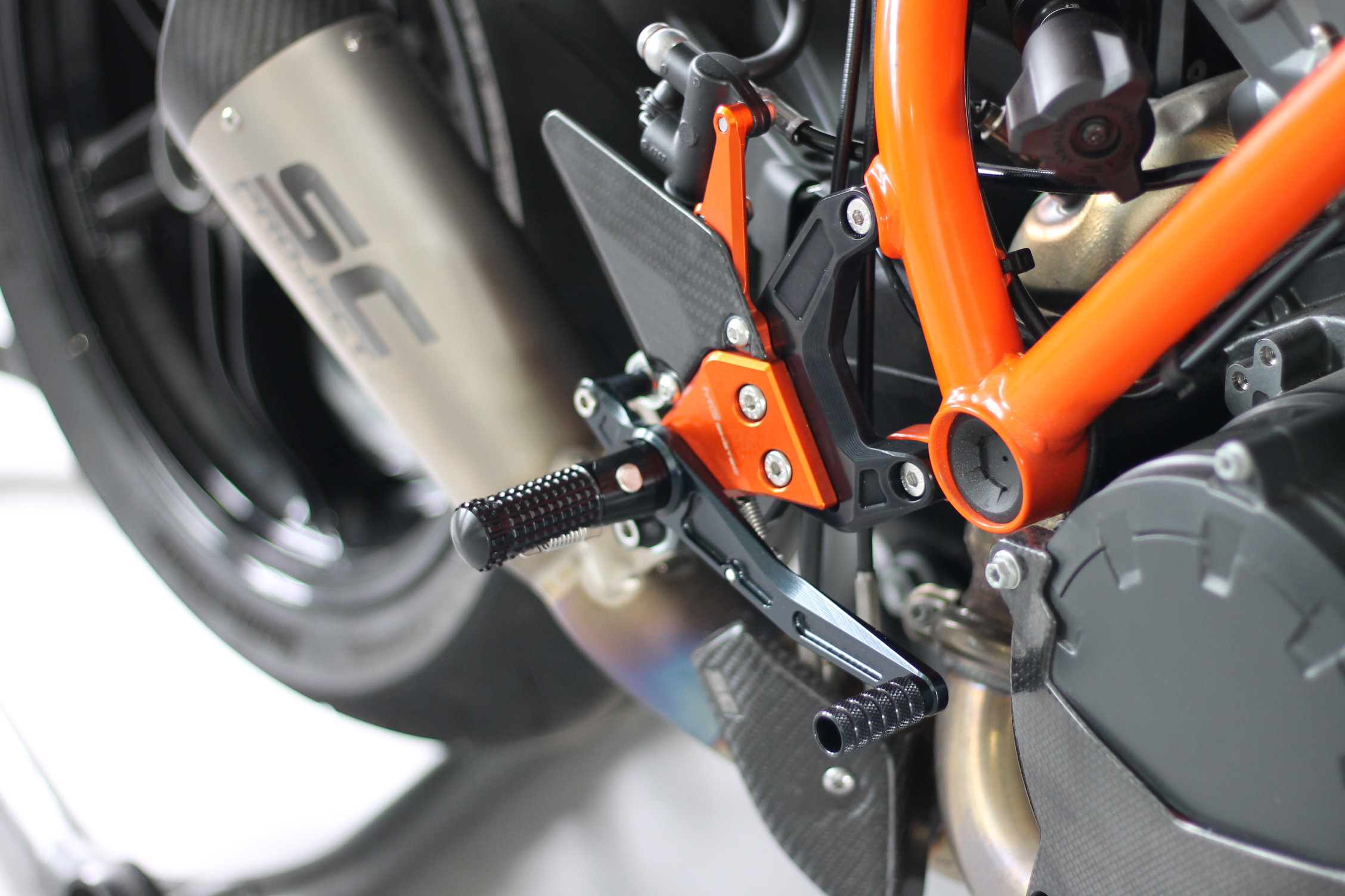 Sistema de reposapiés racing, completamente ajustable ergonómicamente en 18 posiciones y hasta 45 mm.