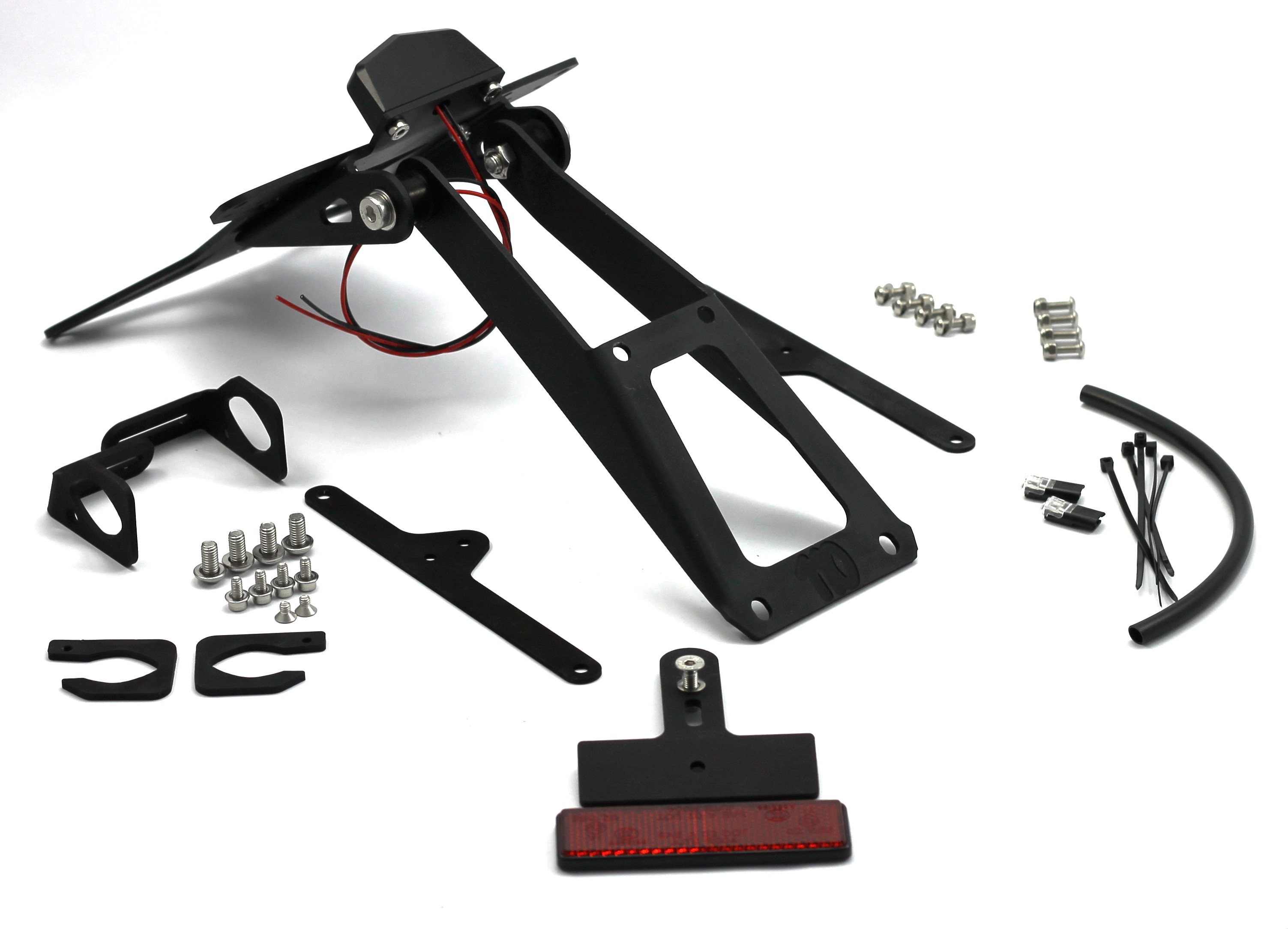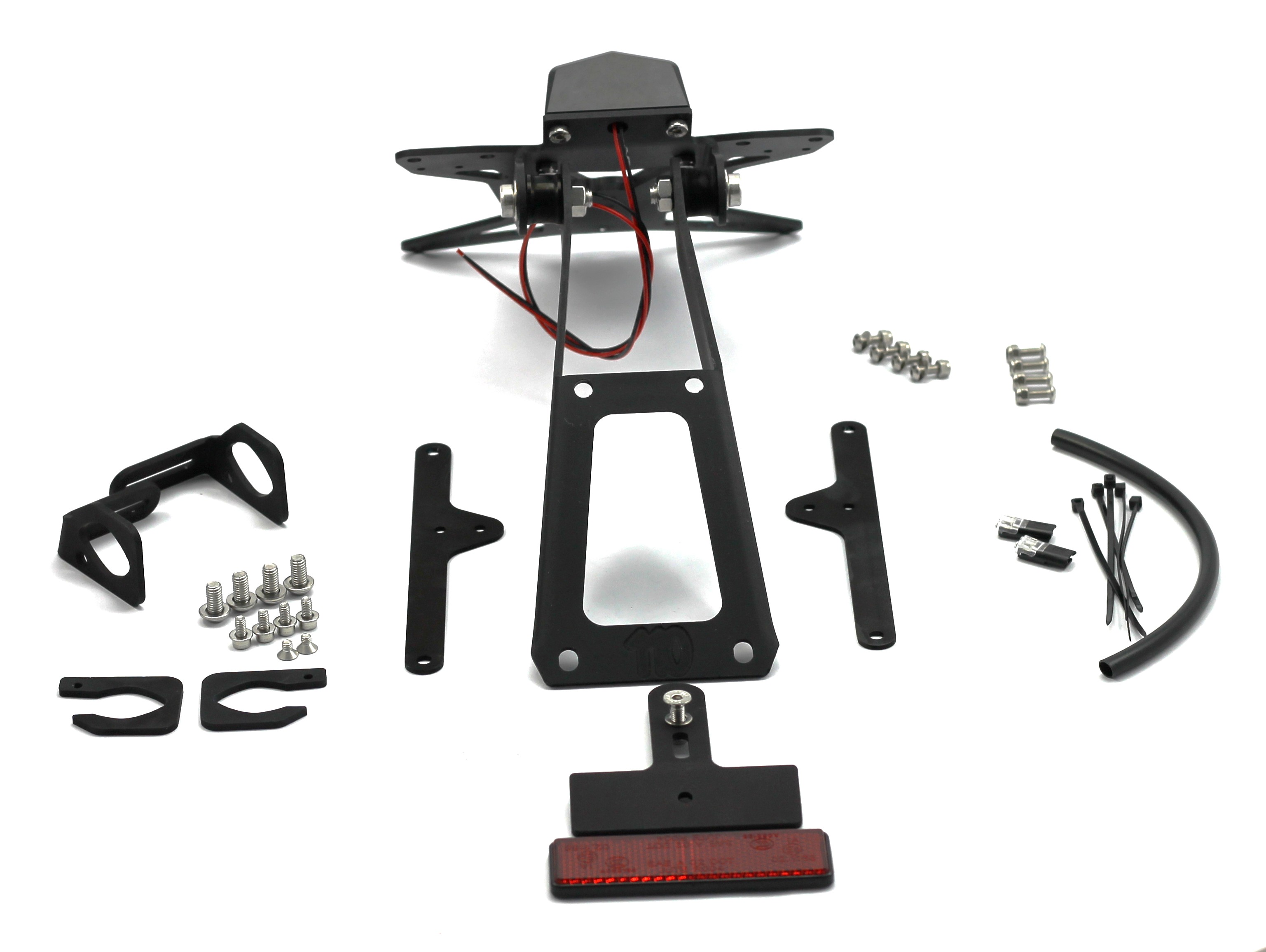 • Elimina-parafango dal look slanciato e aggressivo, per montare la targa e gli indicatori di direzione; sostituisce il pezzo originale di grandi dimensioni