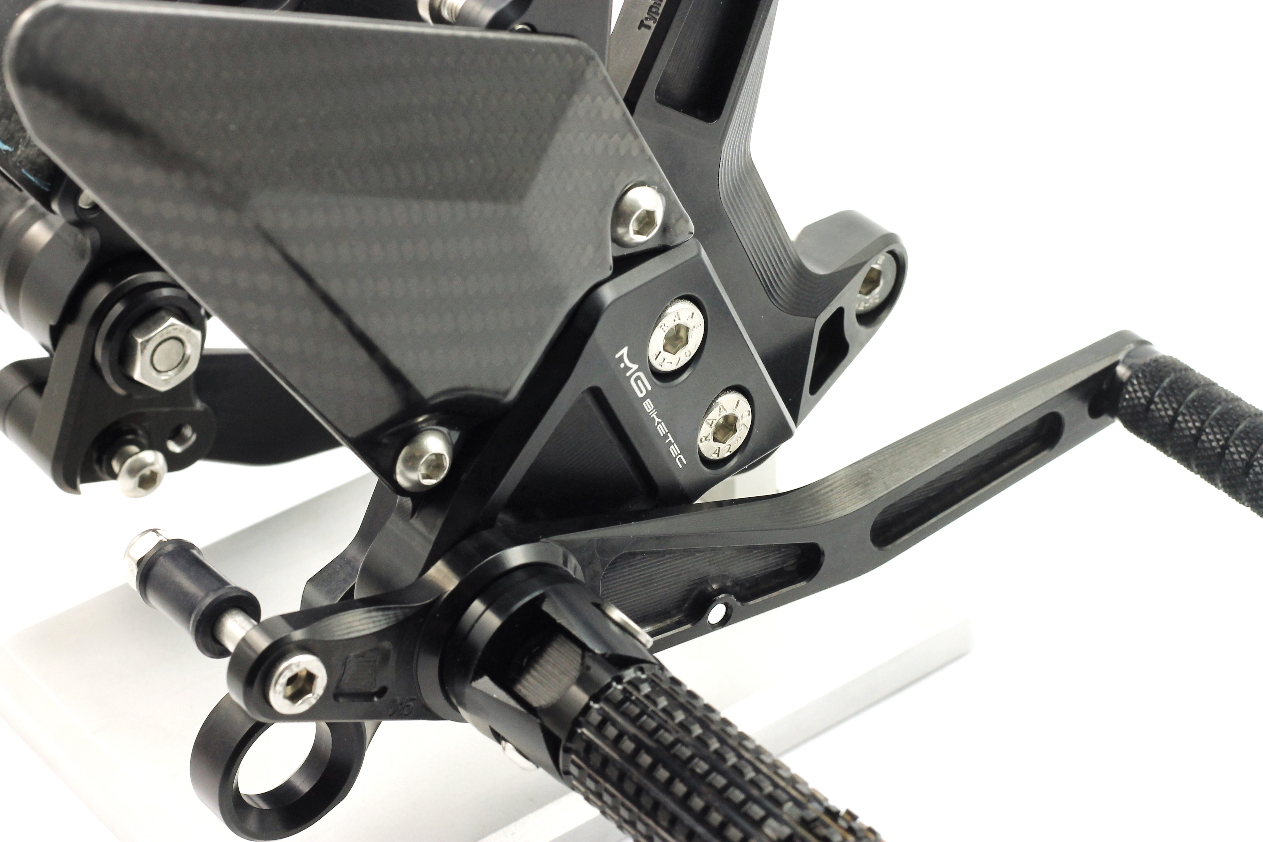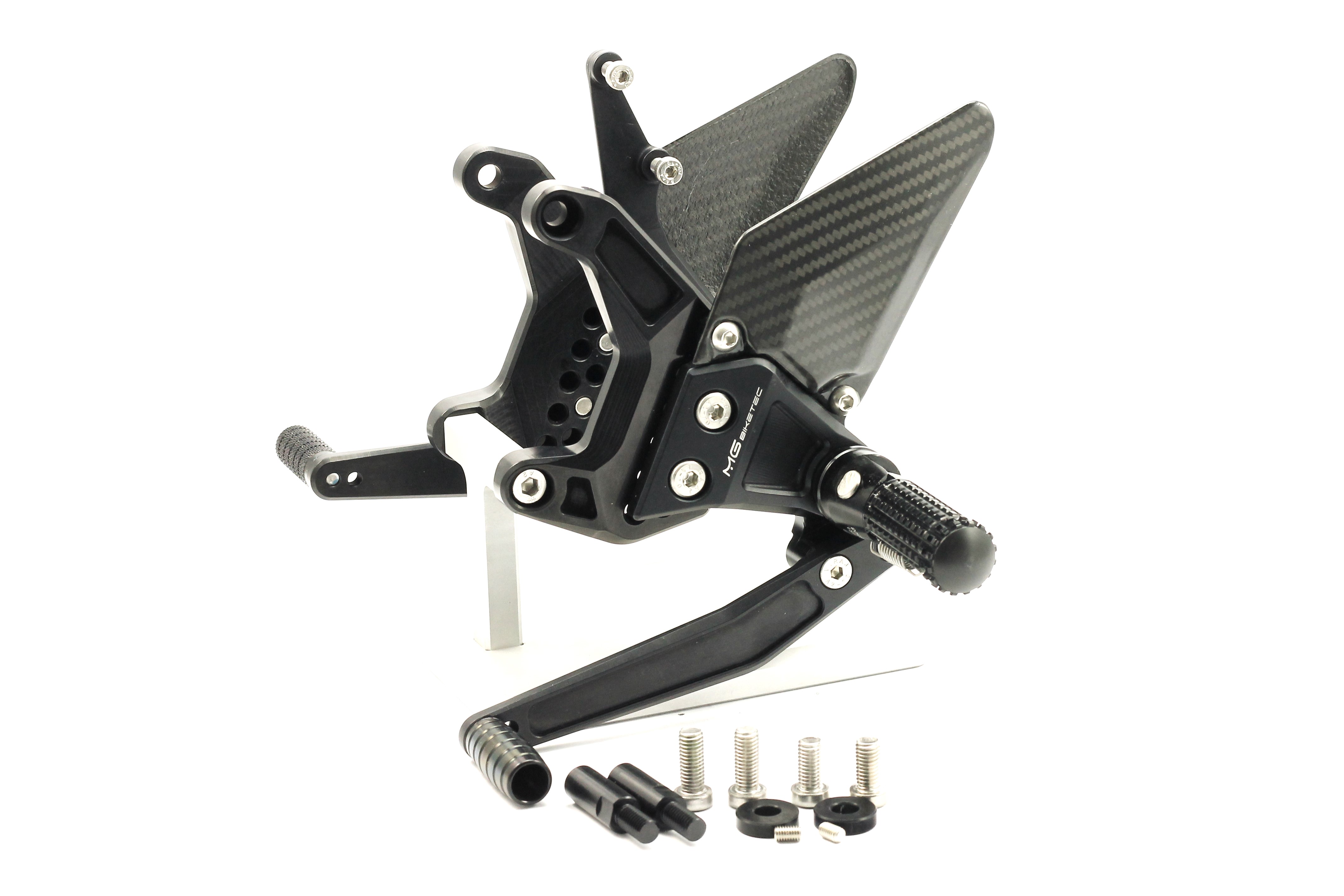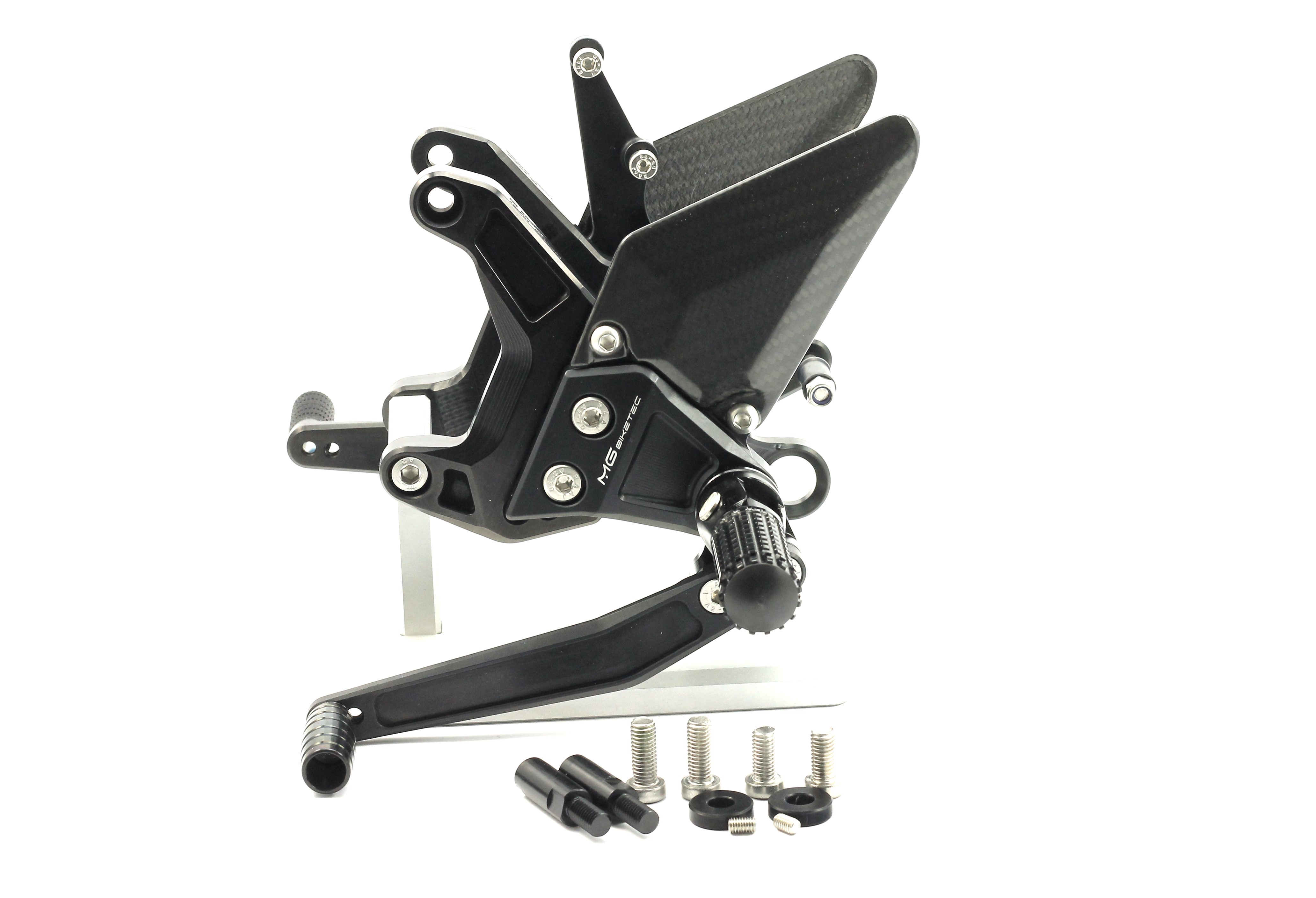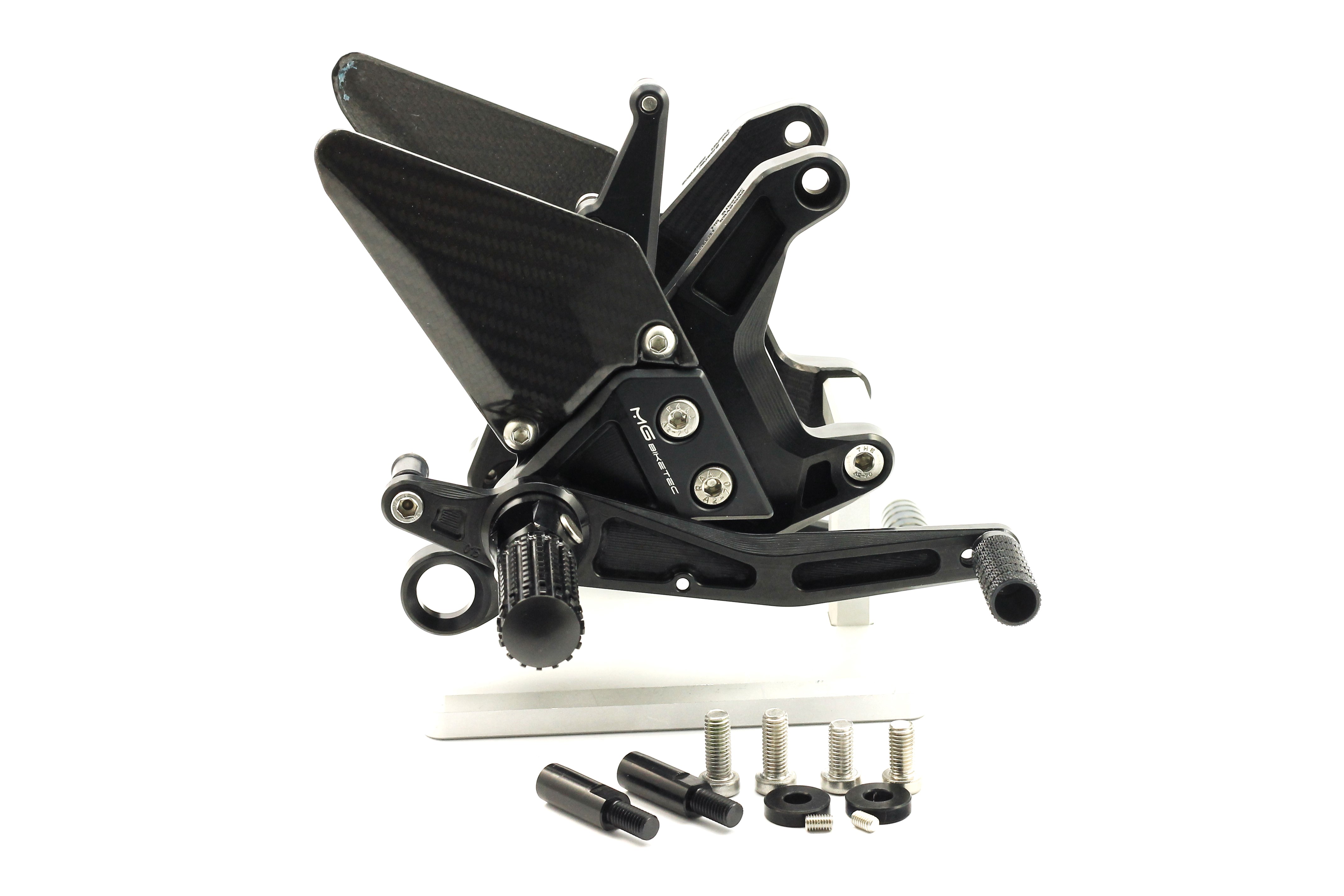 • Pieghevole regolabile su 18 posizioni, fino a 45 mm, fino a 10 mm verso il basso e 20 mm verso l'alto. Pedane del freno e della frizione regolabili su 2 posizioni (10 mm)