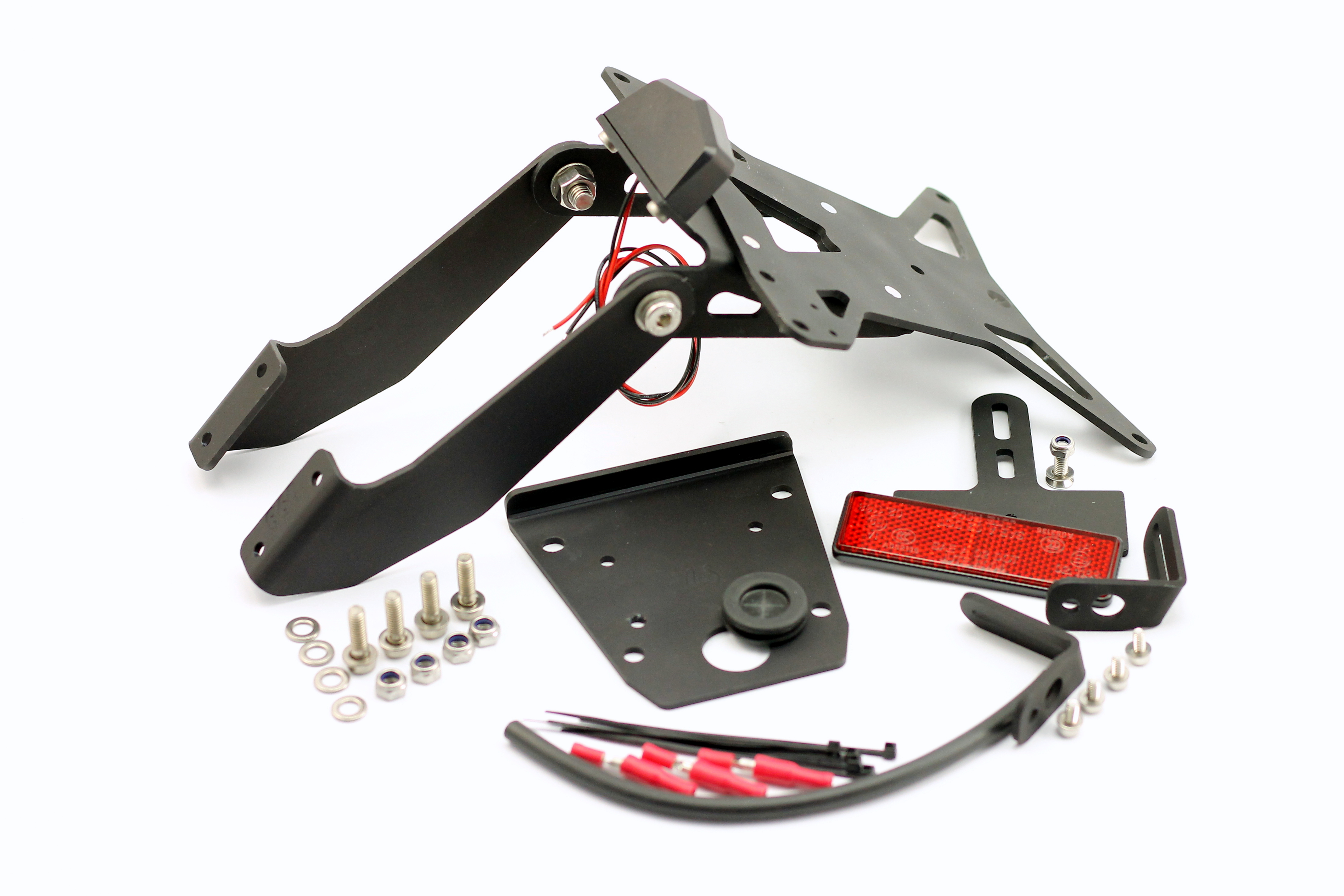 • Elimina-parafango dal look slanciato e aggressivo, per montare la targa e gli indicatori di direzione; sostituisce il pezzo originale di grandi dimensioni