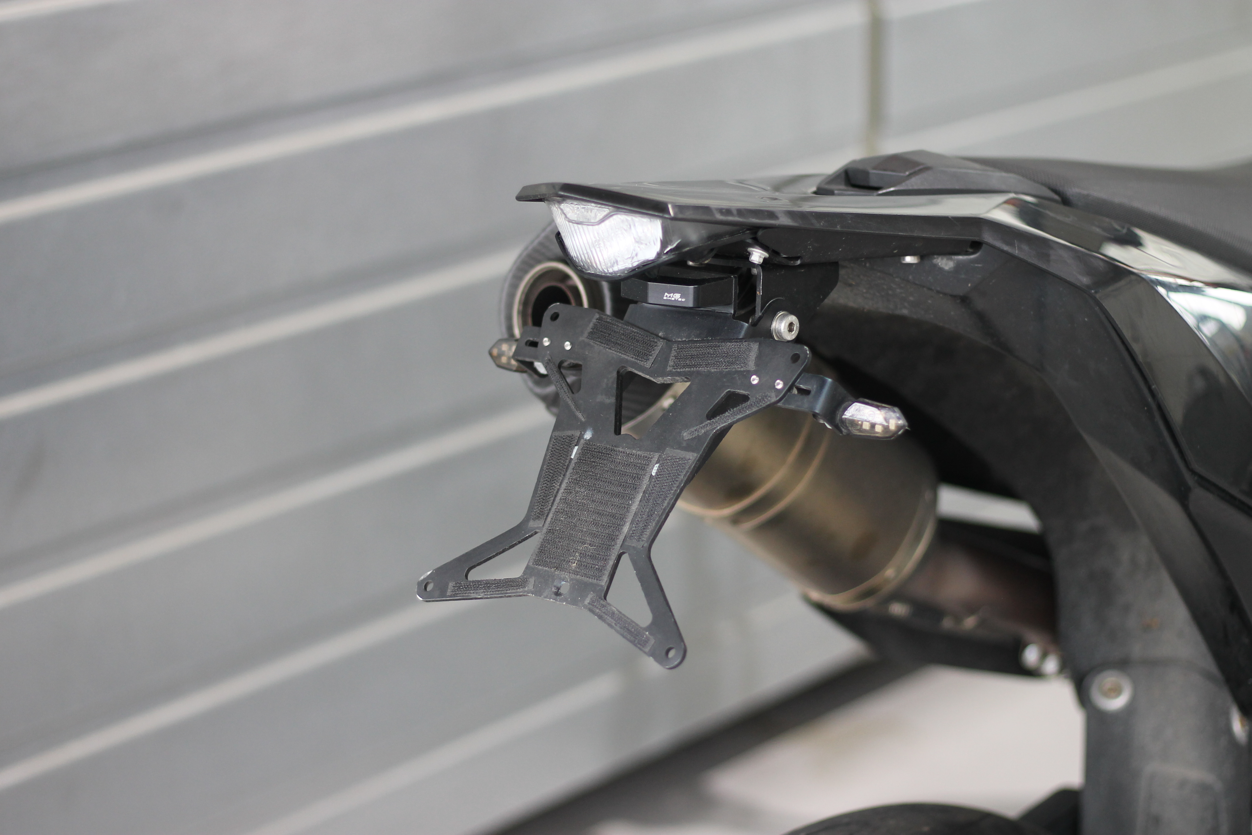 • Elimina-parafango dal look slanciato e aggressivo, per montare la targa e gli indicatori di direzione; sostituisce il pezzo originale di grandi dimensioni